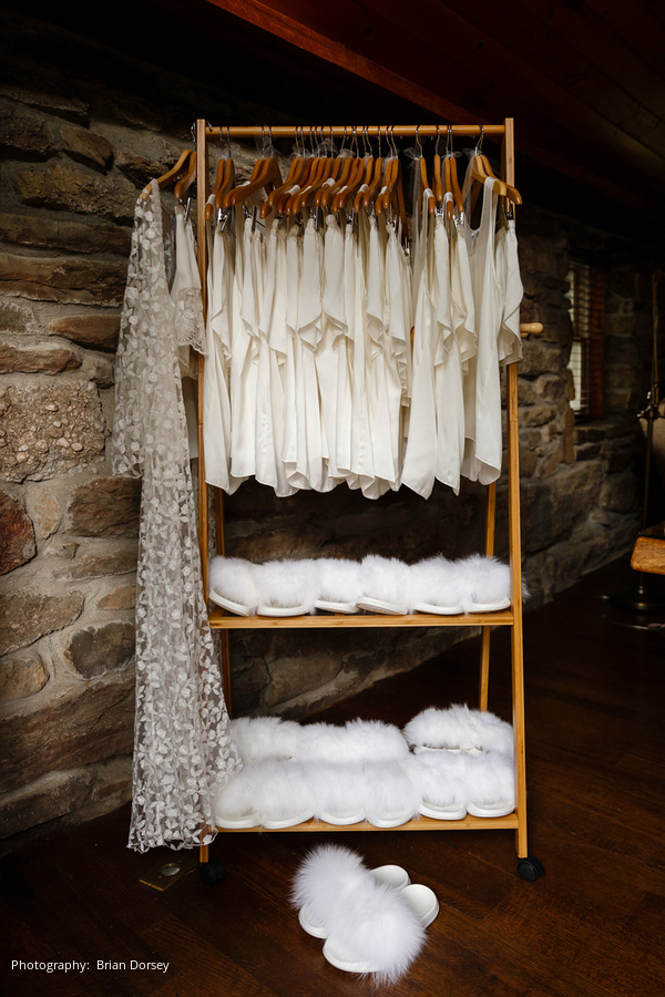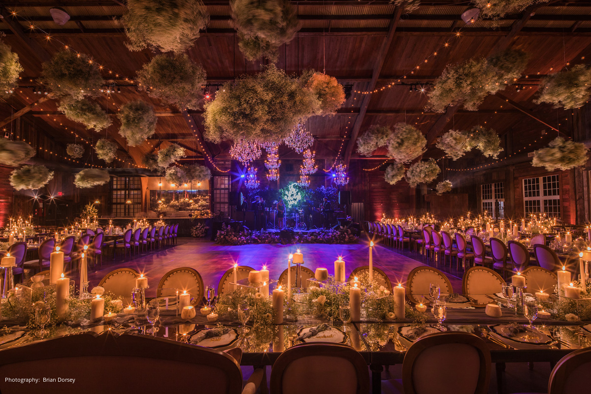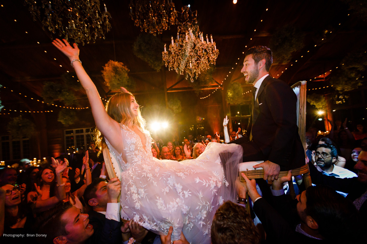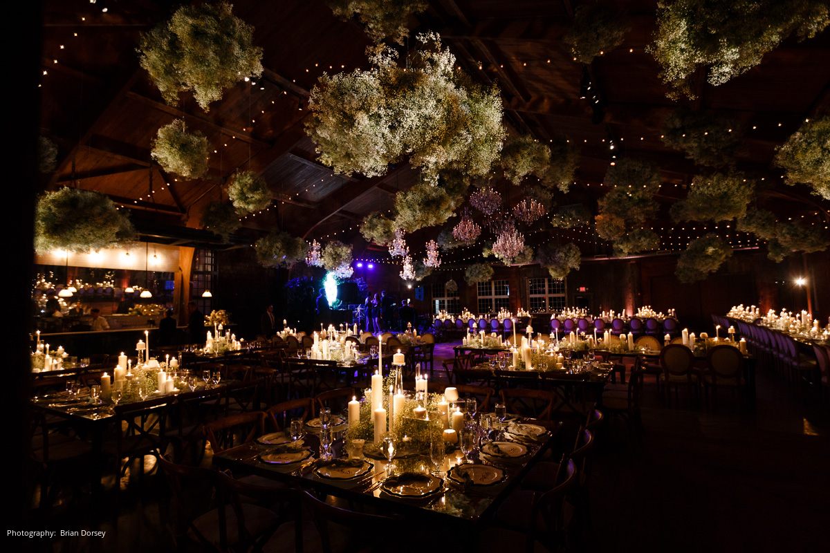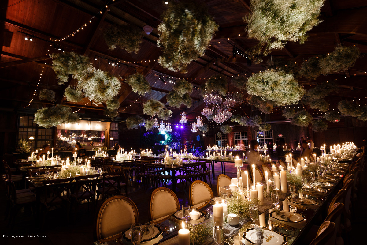 Cocktail hour led to a barn reception, where clouds of baby’s breath covered the ceiling. The newlyweds and their guests danced for hours, as a 90s band performed all their favorite hits, and guests were asked to come to brunch in their pajamas the next morning. When they left, everyone was given bouquets of flowers to take home – all of which, were repurposed from the entire weekend.