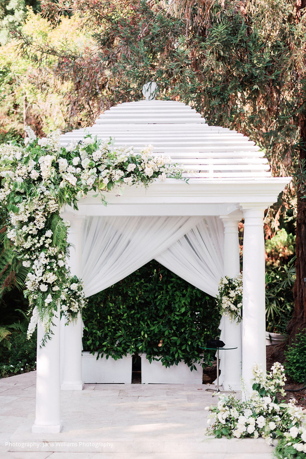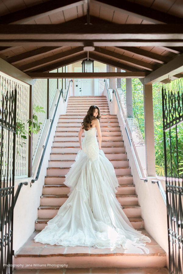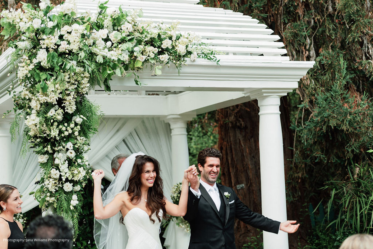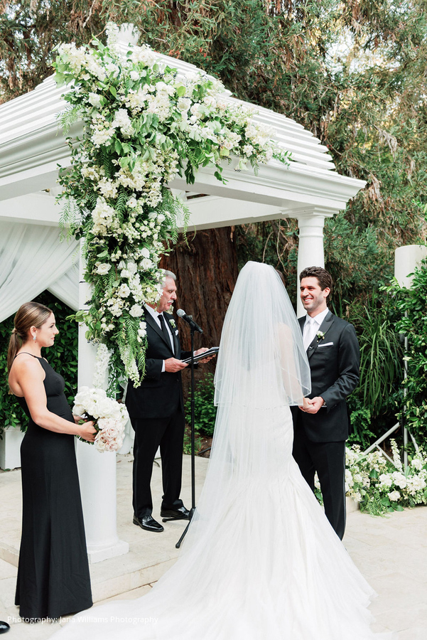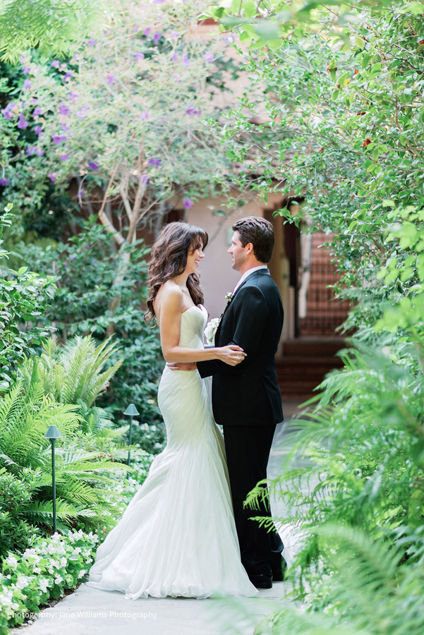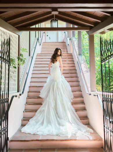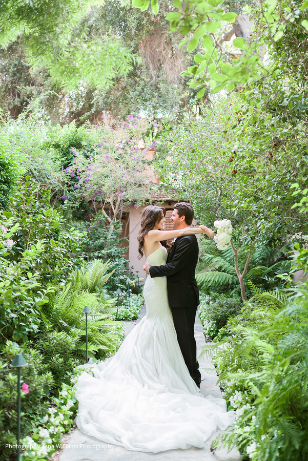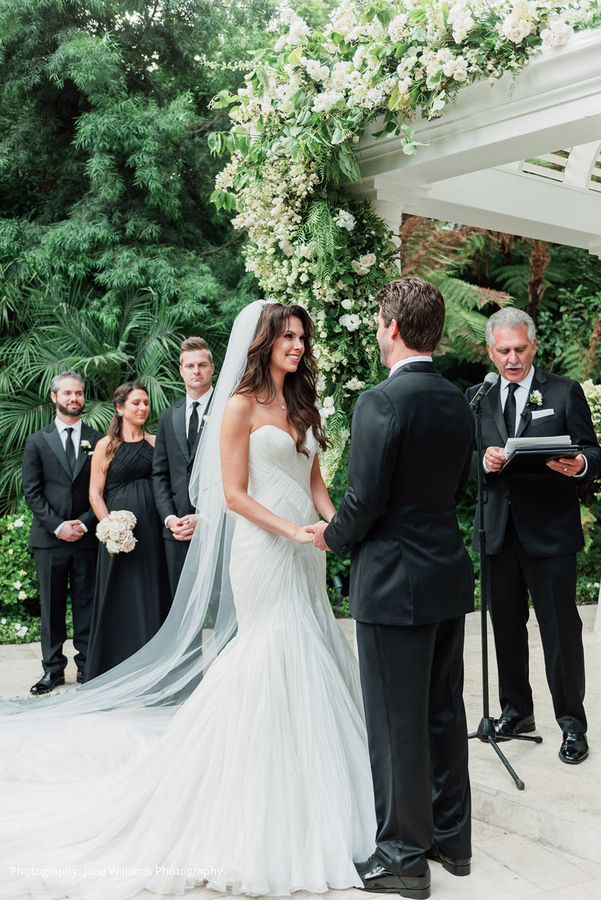 Location, Caterer and Cake: Hotel Bel-Air, Los Angeles, CA; Rentals: Revelry Event Designers, Los Angeles, CA; Wedding Dress: Mark Zunino