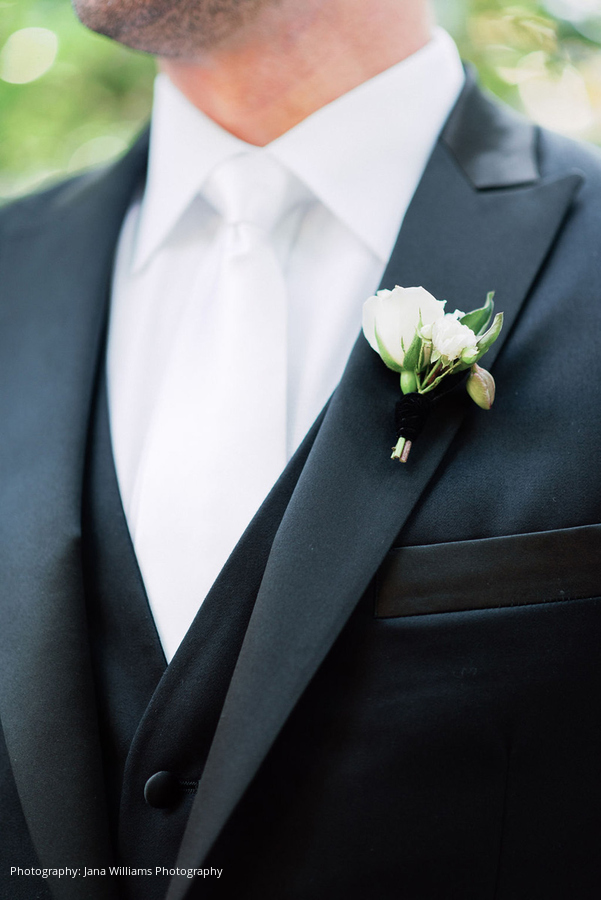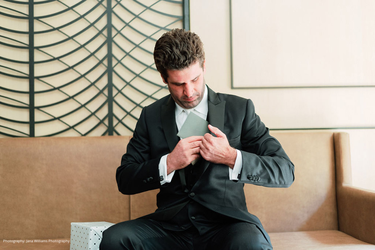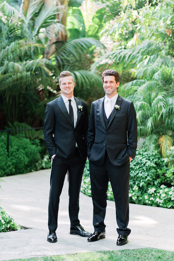 The wedding day was fabulous and began with Taylor and his friends enjoying the day by the pool, while Ashley and the girls enjoyed the pampering process. Ashley looked beautiful in her custom Mark Zunino Atelier gown and Taylor looked as handsome as ever in his tuxedo. Their first look was an unforgettable moment.