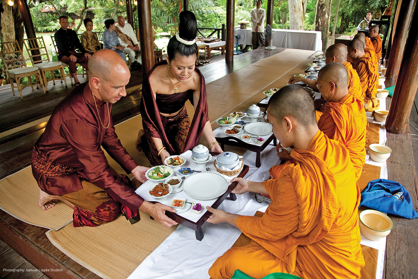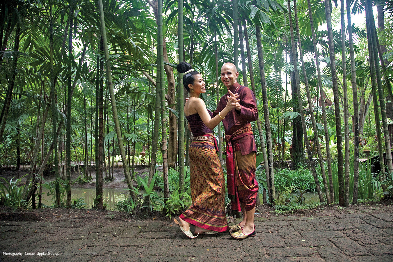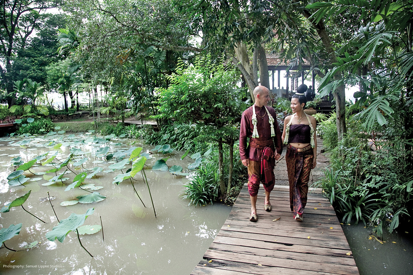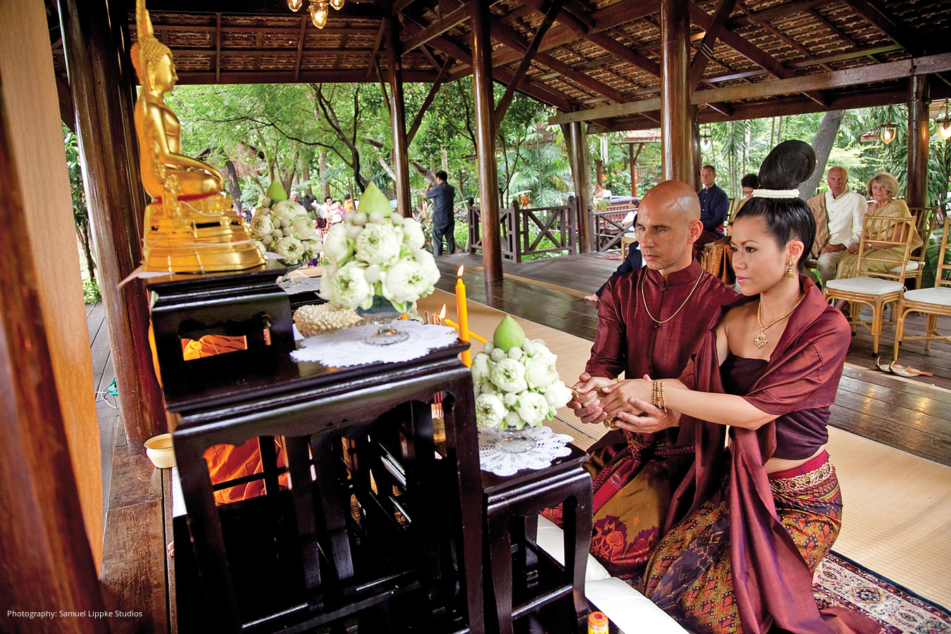 Forty-one days after their wedding in the States, Harly and Cee married again during an elaborate ceremony steeped in centuries-old rituals. From the way she wore her hair to the monks in prayerful attendance, the day revealed an authentic Thai experience.