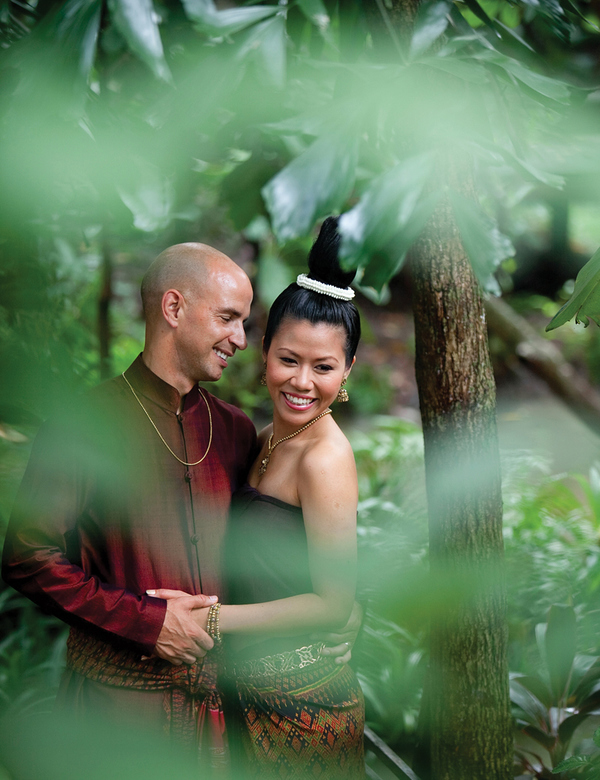Four days later, Cee hopped on a plane to her homeland to complete plans for their Thai nuptials. Harly followed soon after. For Cee, delight was in the details of the Buddhist wedding traditions she witnessed growing up. “From the time I was little, I always knew I wanted to have a traditional Thai wedding ceremony,” she says, “just as my mother and father had when they married many years ago.”