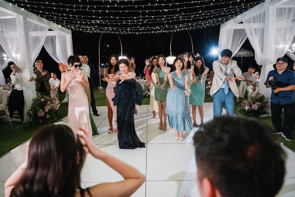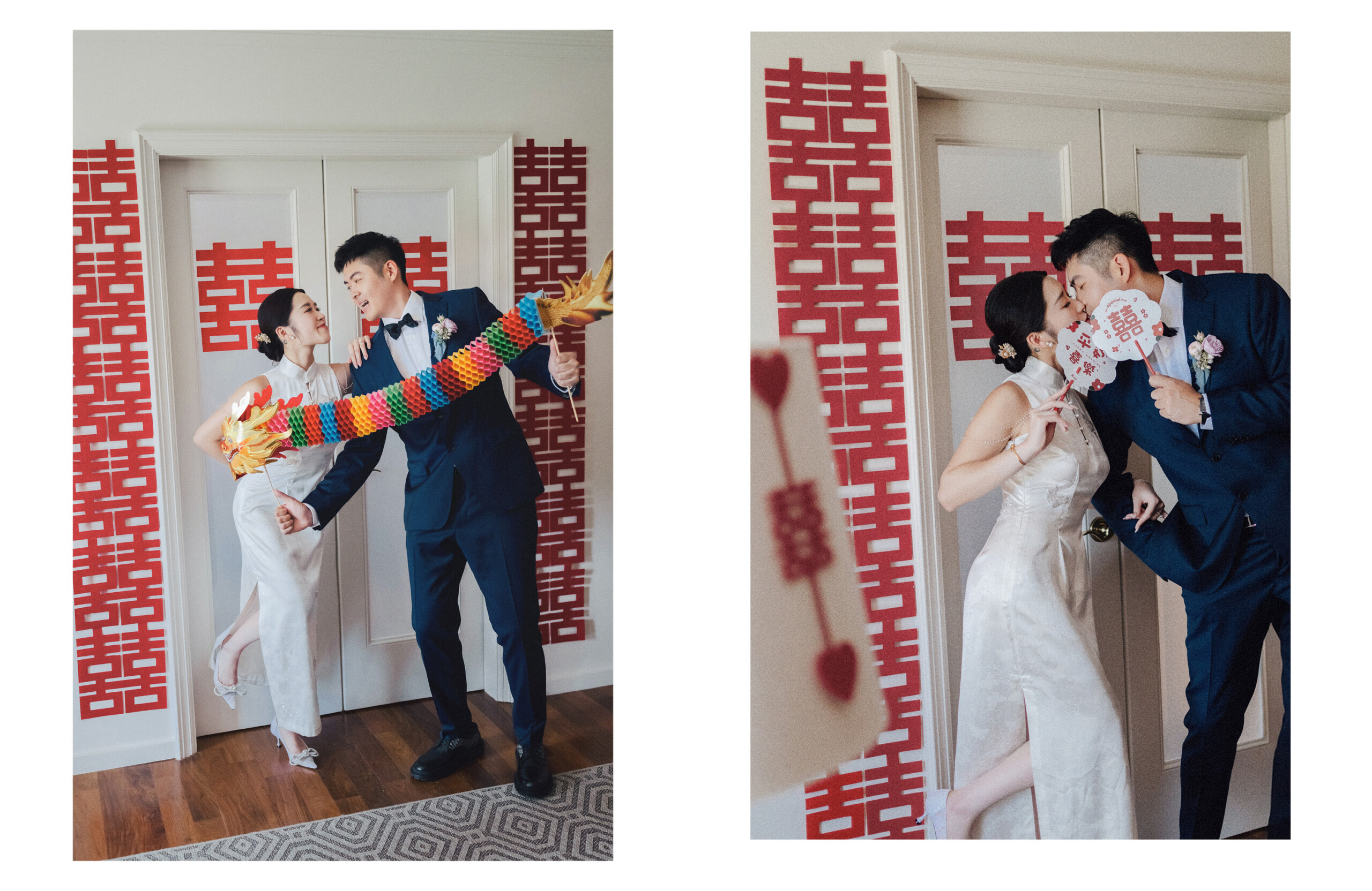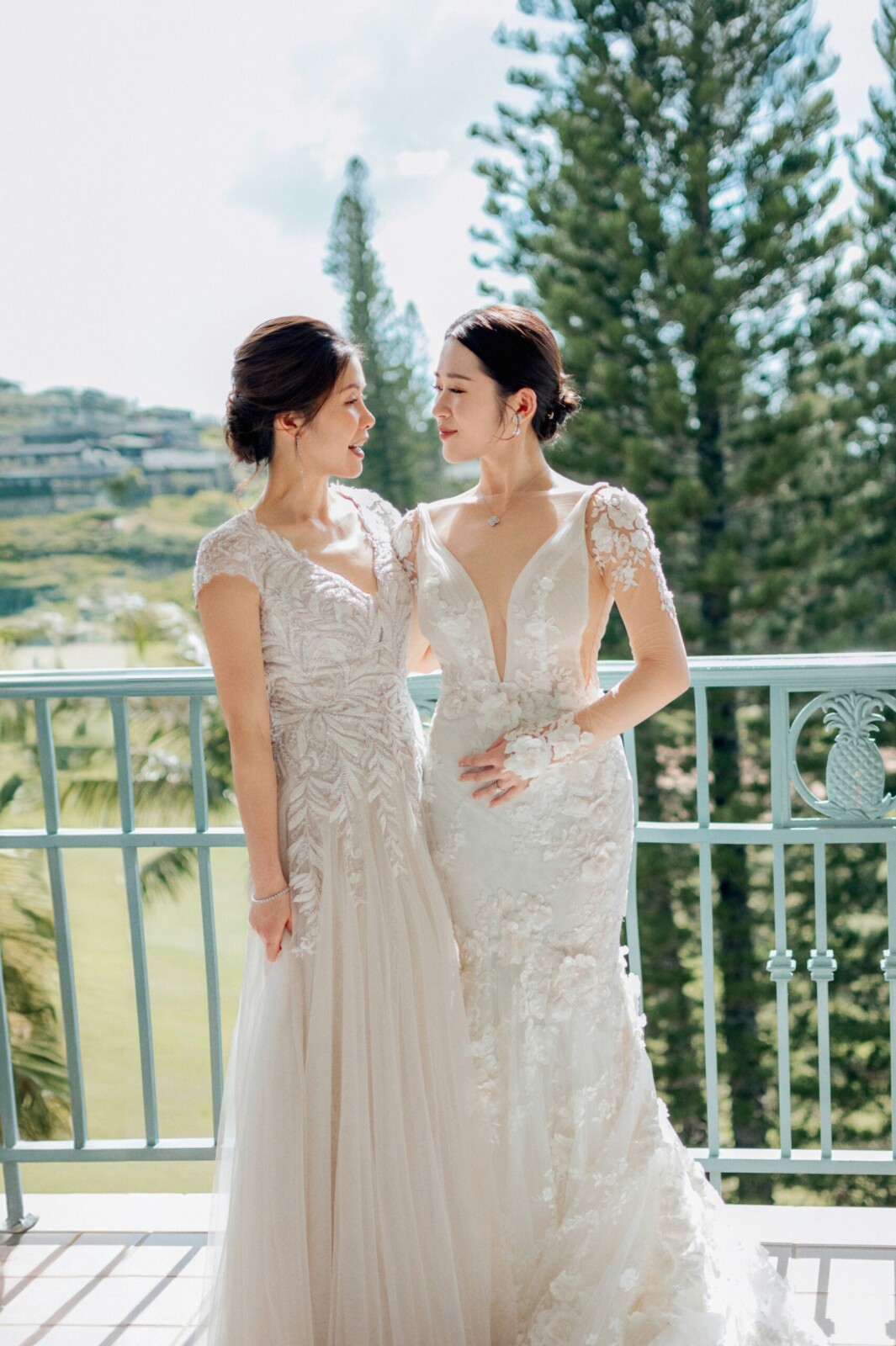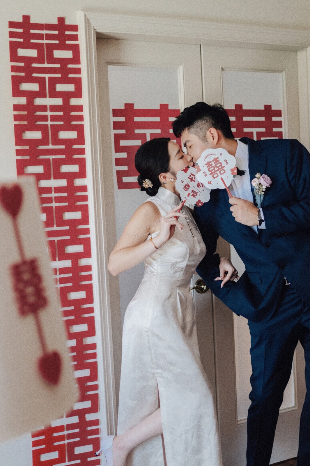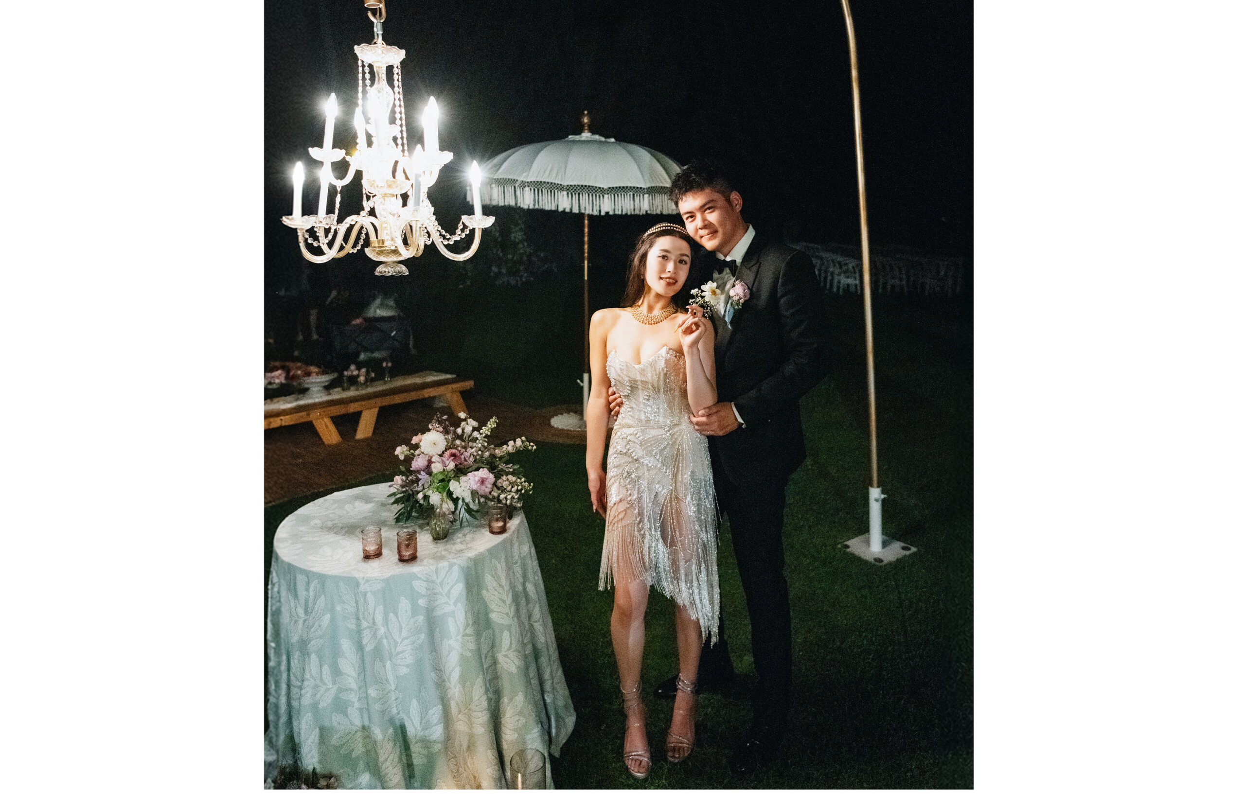 Planning an intimate island wedding of 100 guests, the couple infused their celebration with both Western charm and meaningful Chinese traditions. Mandarin translations of speeches ensured no family member felt left out, and a spirited round of door games offered guests a joyful taste of Chinese culture.