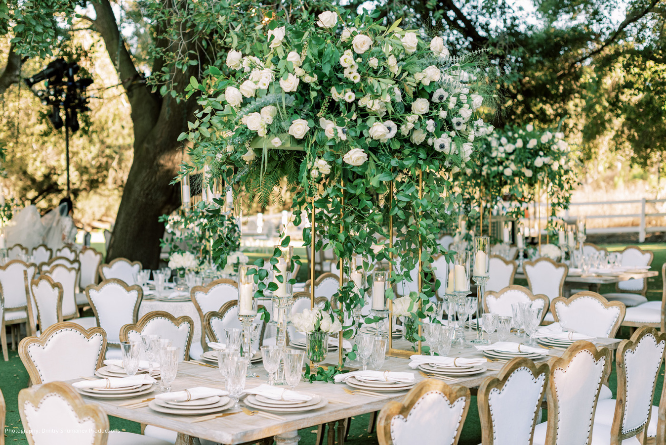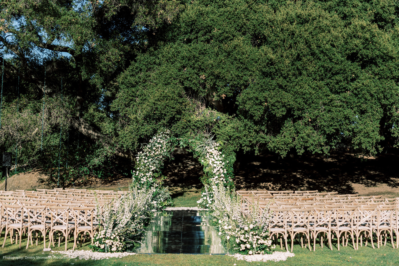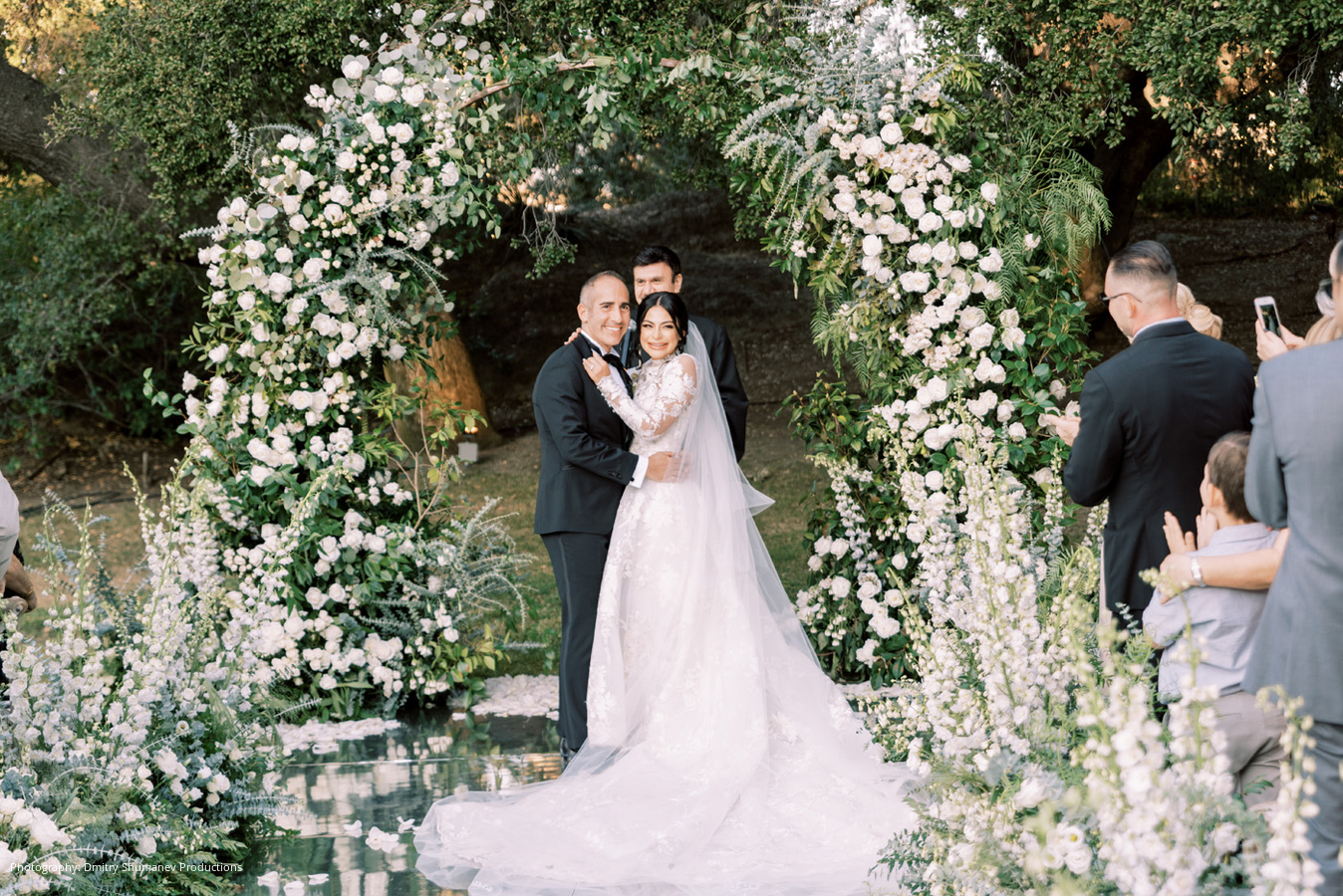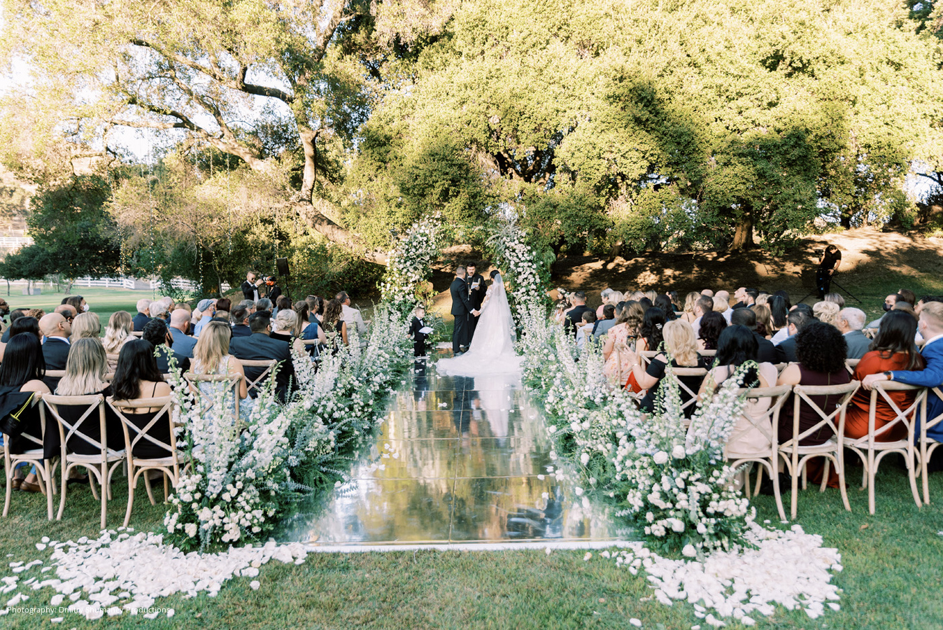 Mary and Greg originally planned to host an intimate destination wedding in Lake Como, Italy, followed by a honeymoon traveling through Europe. After COVID-19 hit, however, both events were cancelled until the couple found a local wedding venue for their September 20, 2020 nuptials. With Aliana Events and Celio’s Designs at the helm of the wedding planning and design process, the magic of Italy was recreated at Saddlerock Ranch in Malibu, California.