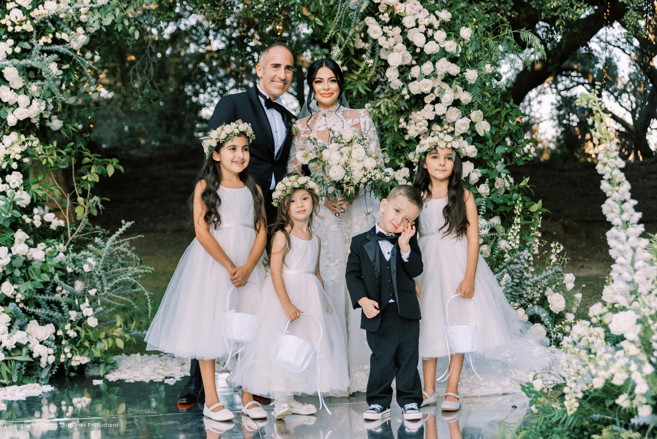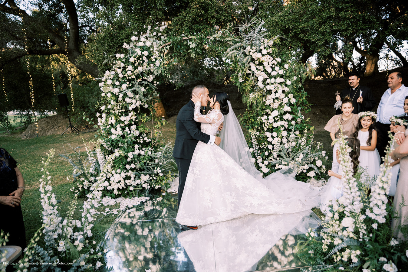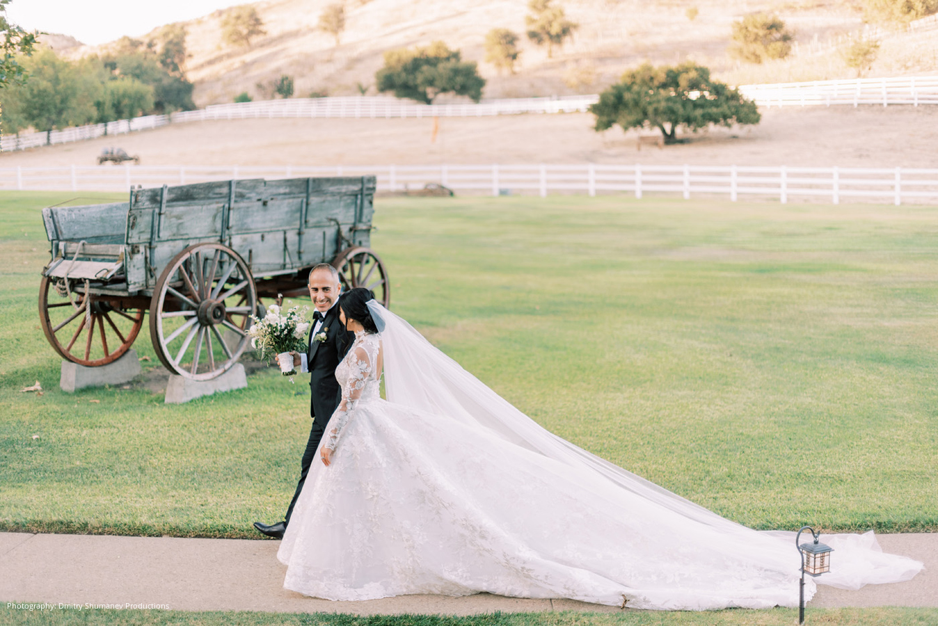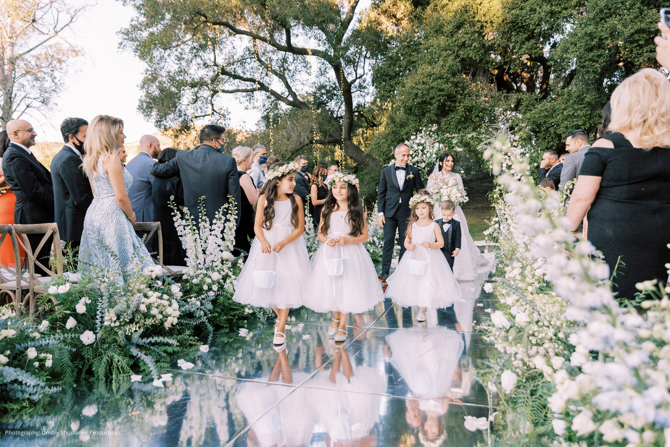 Mary and Greg originally planned to host an intimate destination wedding in Lake Como, Italy, followed by a honeymoon traveling through Europe. After COVID-19 hit, however, both events were cancelled until the couple found a local wedding venue for their September 20, 2020 nuptials. With Aliana Events and Celio’s Designs at the helm of the wedding planning and design process, the magic of Italy was recreated at Saddlerock Ranch in Malibu, California.