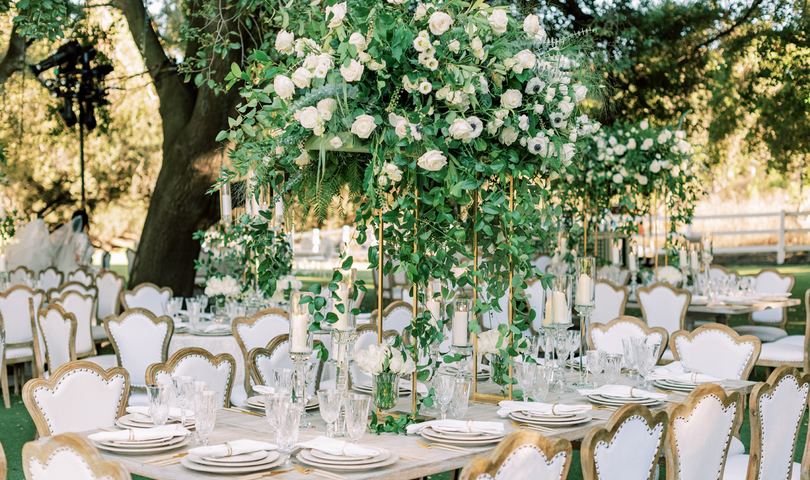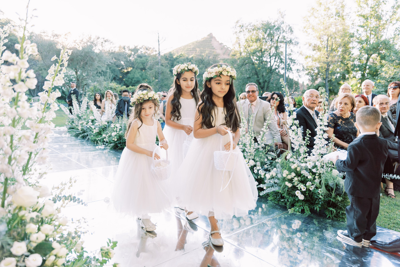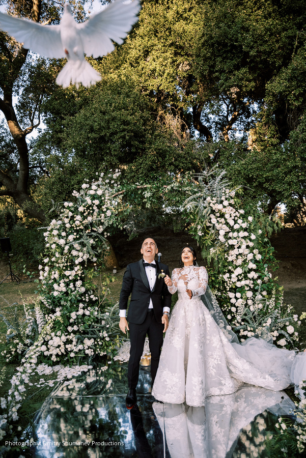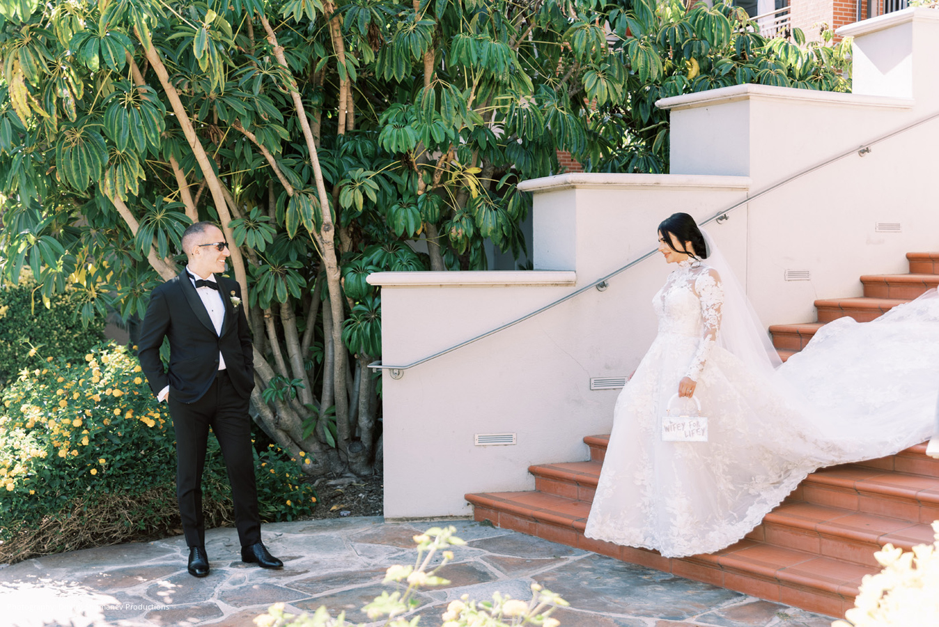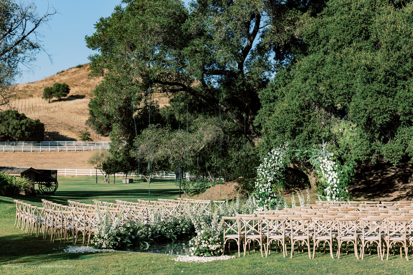 Mary and Greg originally planned to host an intimate destination wedding in Lake Como, Italy, followed by a honeymoon traveling through Europe. After COVID-19 hit, however, both events were cancelled until the couple found a local wedding venue for their September 20, 2020 nuptials. With Aliana Events and Celio’s Designs at the helm of the wedding planning and design process, the magic of Italy was recreated at Saddlerock Ranch in Malibu, California.