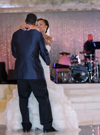 Caterer: Wolfgang Puck Catering, Dallas, TX; Cake: Fancy Cakes by Lauren, Dallas, TX; Lighting: Beyond, Dallas, TX; Wedding Dress: Lazaro; Groom's Attire: Louis Vuitton