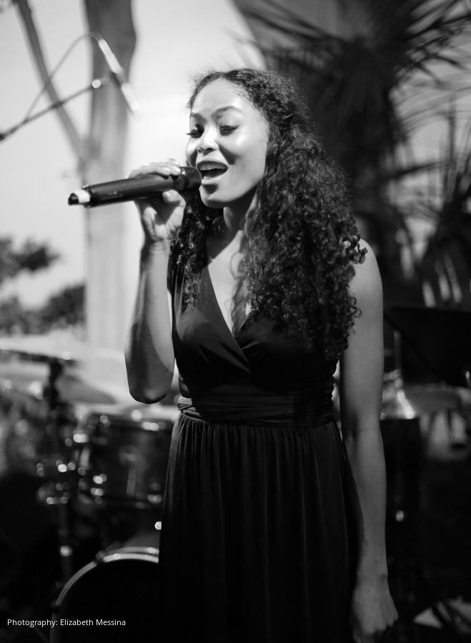 On the big day, the couple’s 200 guests gathered at the hotel’s Swan Lake for the ceremony. “I was excited. Looking at her and knowing she was going to be the person I spent the rest of my life with, was a happy feeling and I was even more happy to have all of our friends and family there to celebrate with,” says David. Throughout the service, a gospel choir sang songs such as “Stay With Me” and “(Your Love Keeps Lifting Me) Higher and Higher.”