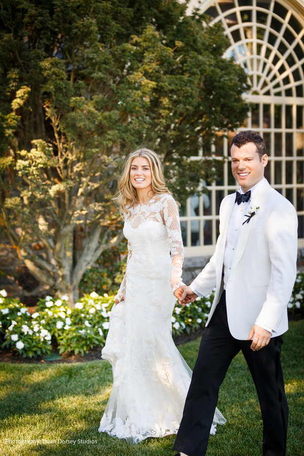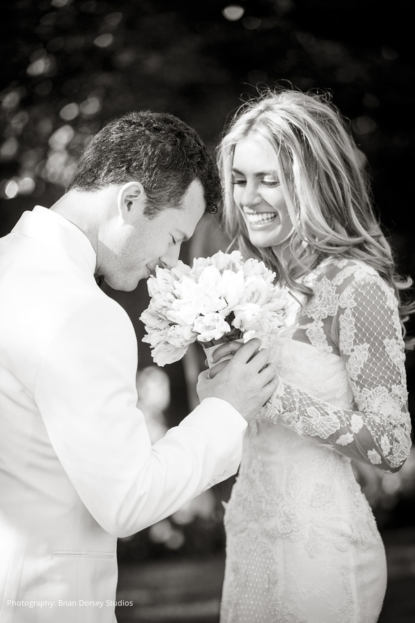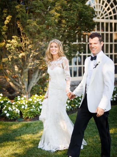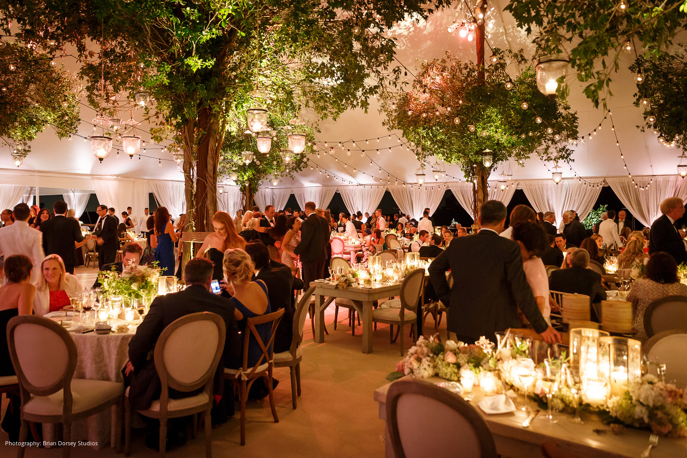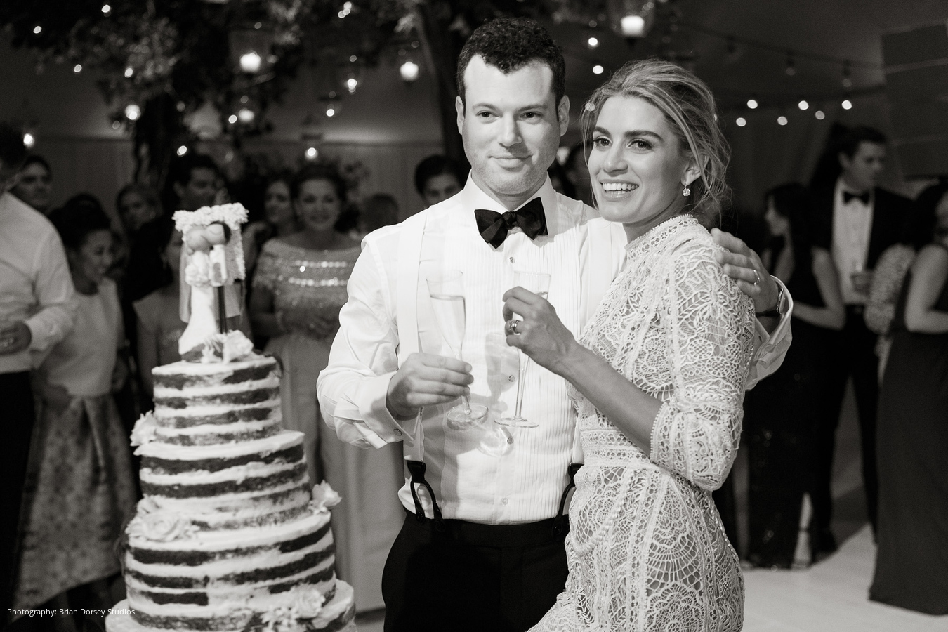 Location: Private Estate, New Jersey; Cake: Nine Cakes, Brooklyn, NY; Planner: JZ Events, New York, NY; Floral and Event Design, Linen and Rentals: Lewis Miller Design, New York, NY; Photography: Brian Dorsey Studios Tent: Stamford Tent & Event Services, Stamford, CT; Lighting: Levy Lighting, New York, NY; Fireworks: Fireworks by Grucci, Bellport, NY; Ceremony Dress and Veil: Monique Lhuillier; Reception Dress: Marcia Goncalves; Groom’s Attire: Ralph Lauren
