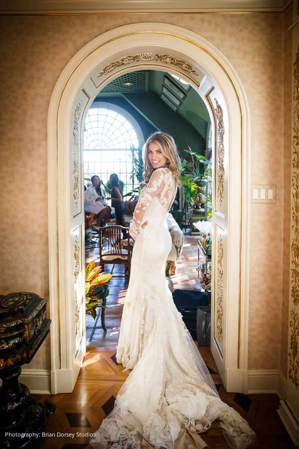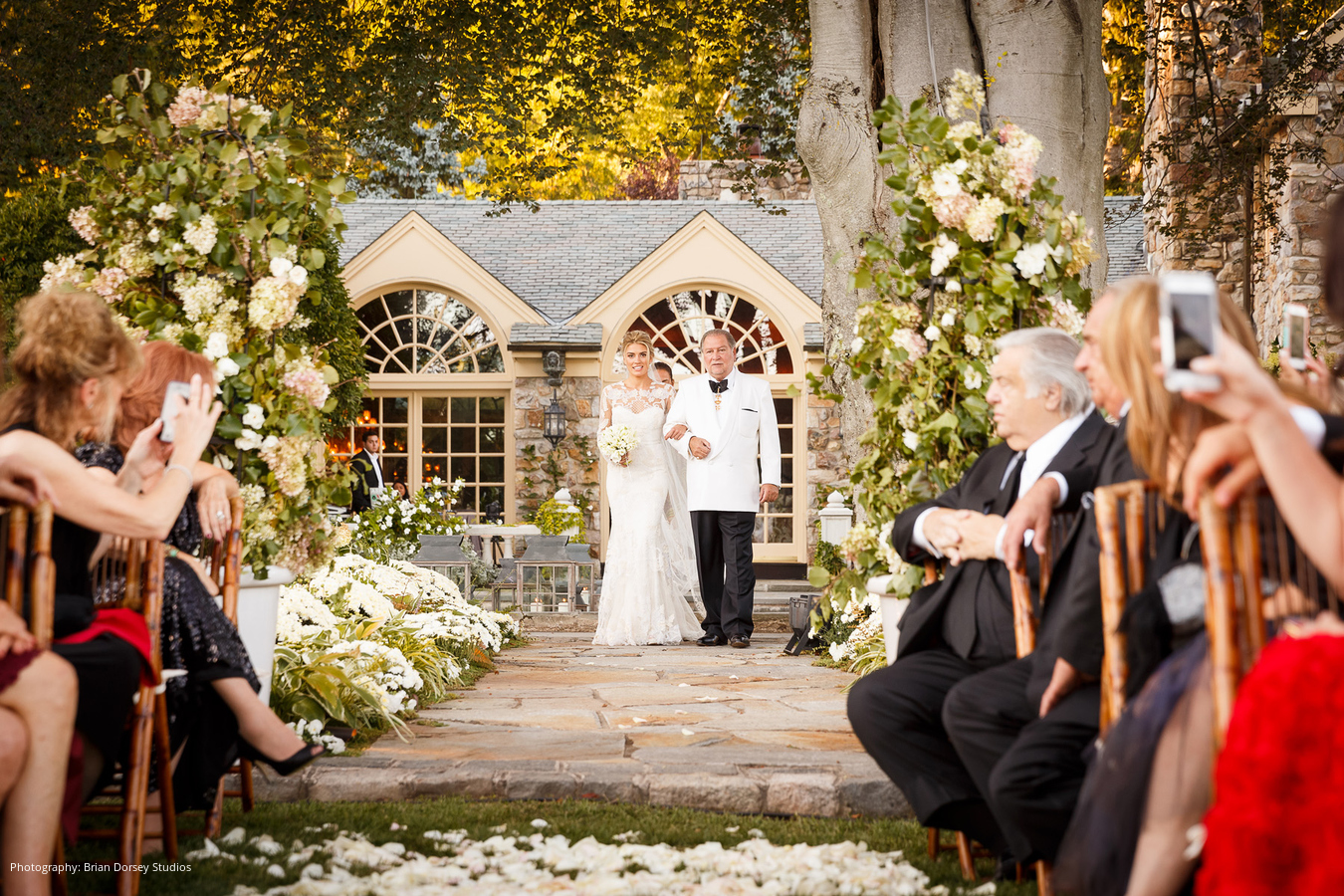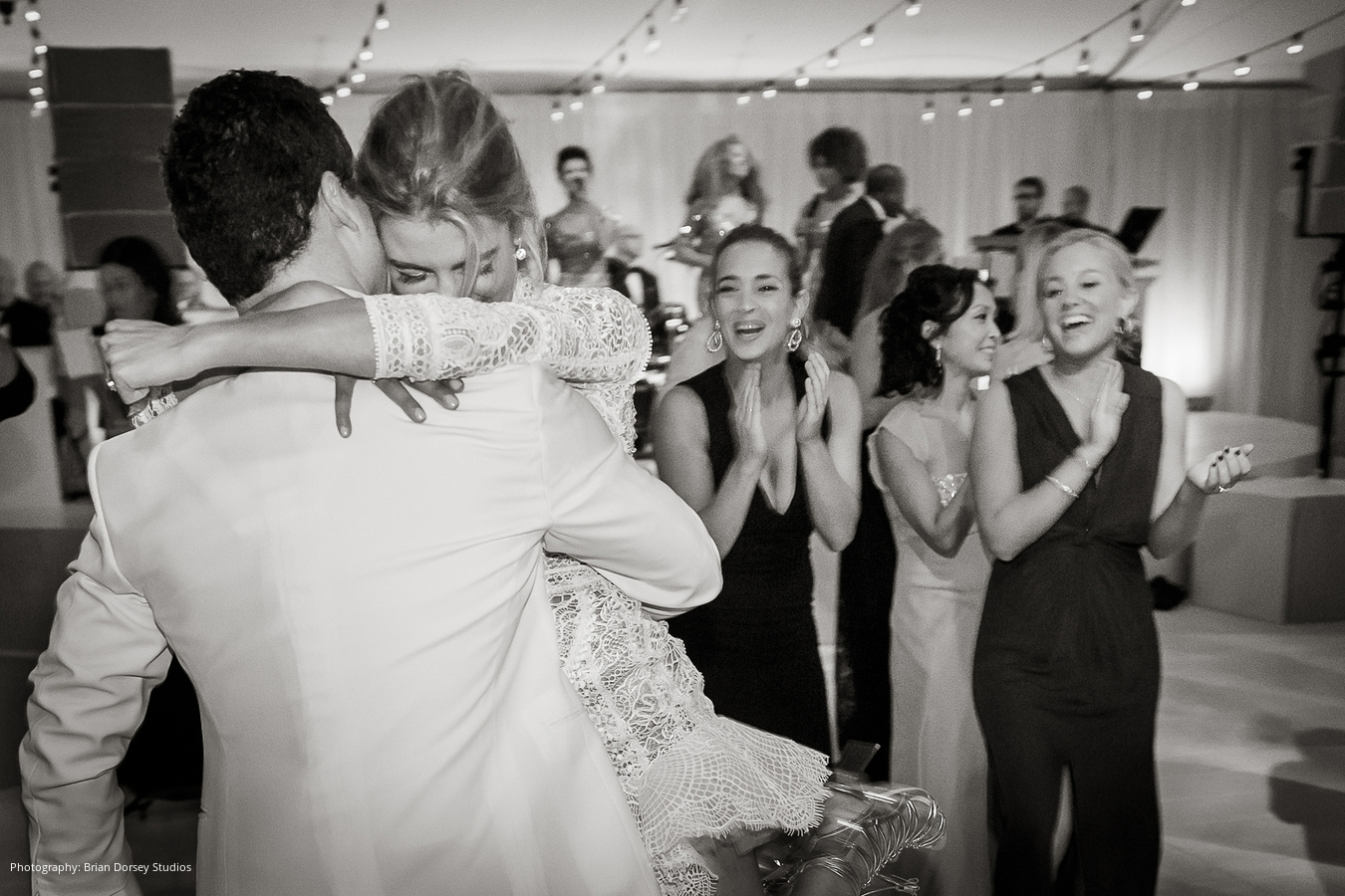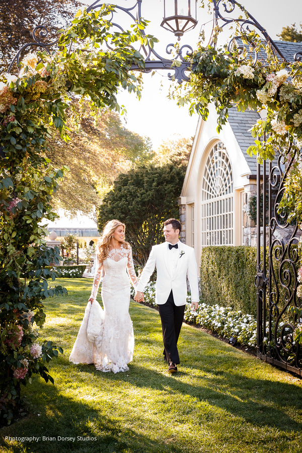 Location: Private Estate, New Jersey; Cake: Nine Cakes, Brooklyn, NY; Planner: JZ Events, New York, NY; Floral and Event Design, Linen and Rentals: Lewis Miller Design, New York, NY; Photography: Brian Dorsey Studios Tent: Stamford Tent & Event Services, Stamford, CT; Lighting: Levy Lighting, New York, NY; Fireworks: Fireworks by Grucci, Bellport, NY; Ceremony Dress and Veil: Monique Lhuillier; Reception Dress: Marcia Goncalves; Groom’s Attire: Ralph Lauren