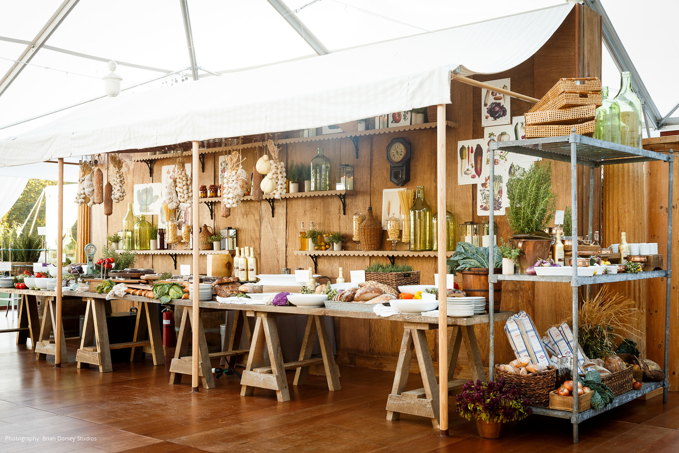 In an ode to the bride's Italian heritage, the cocktail hour featured a groaning board of traditional foods served in a wood-planked setting accompanied by a male crooner.