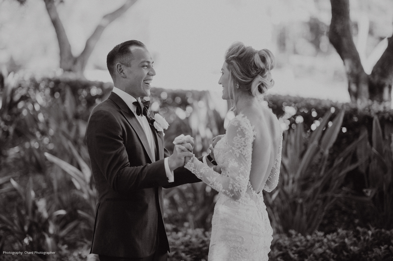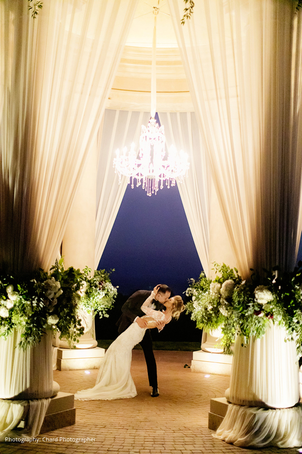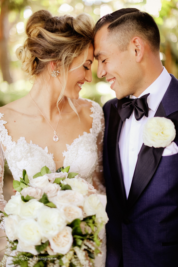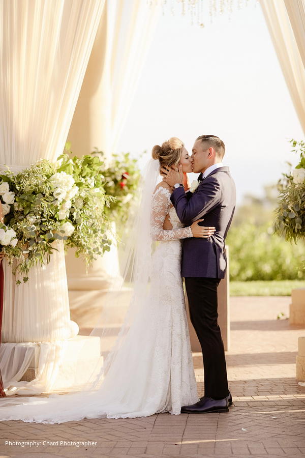 Location: The Resort at Pelican Hill, Newport Coast, CA; Planner: Delicate Details, Los Angeles, CA; Floral and Event Design: Bloom Box, Costa Mesa, CA; Wedding Dress and Veil: Galia Lahav; Bridal Salon: The White Dress, Costa Mesa, CA; Groom’s Attire: Suitsupply