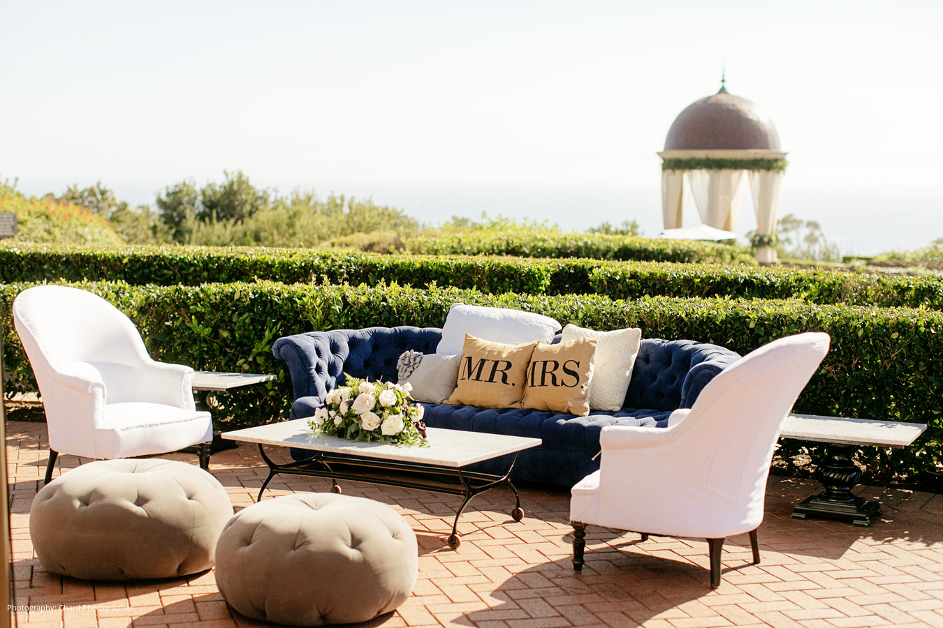 They envisioned a wedding décor scheme of a sophisticated Italian garden, with a twist of Restoration Hardware. Alongside the sweeping ocean views, grand Italian structures and ballroom, it wasn’t necessary to overwhelm the space with flowers and décor to achieve the right ambiance.