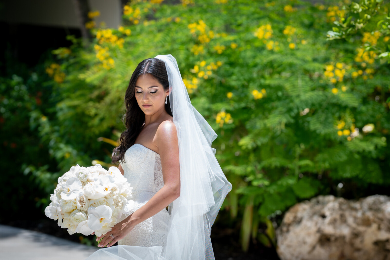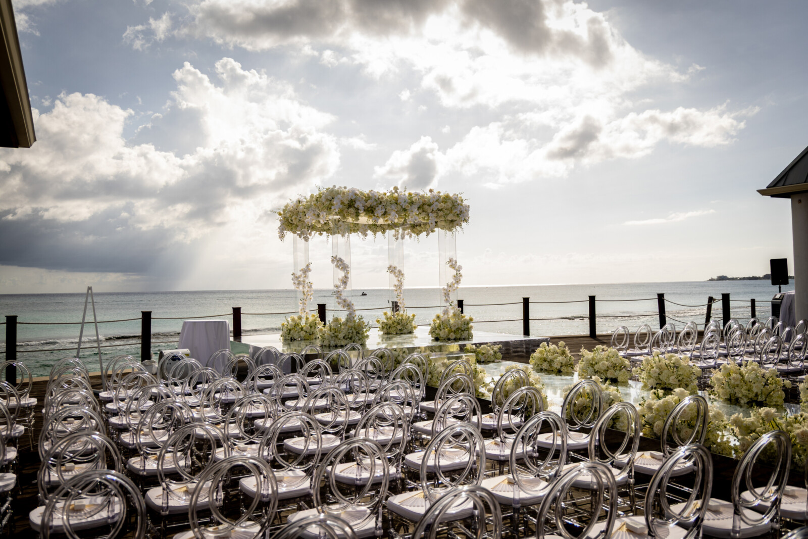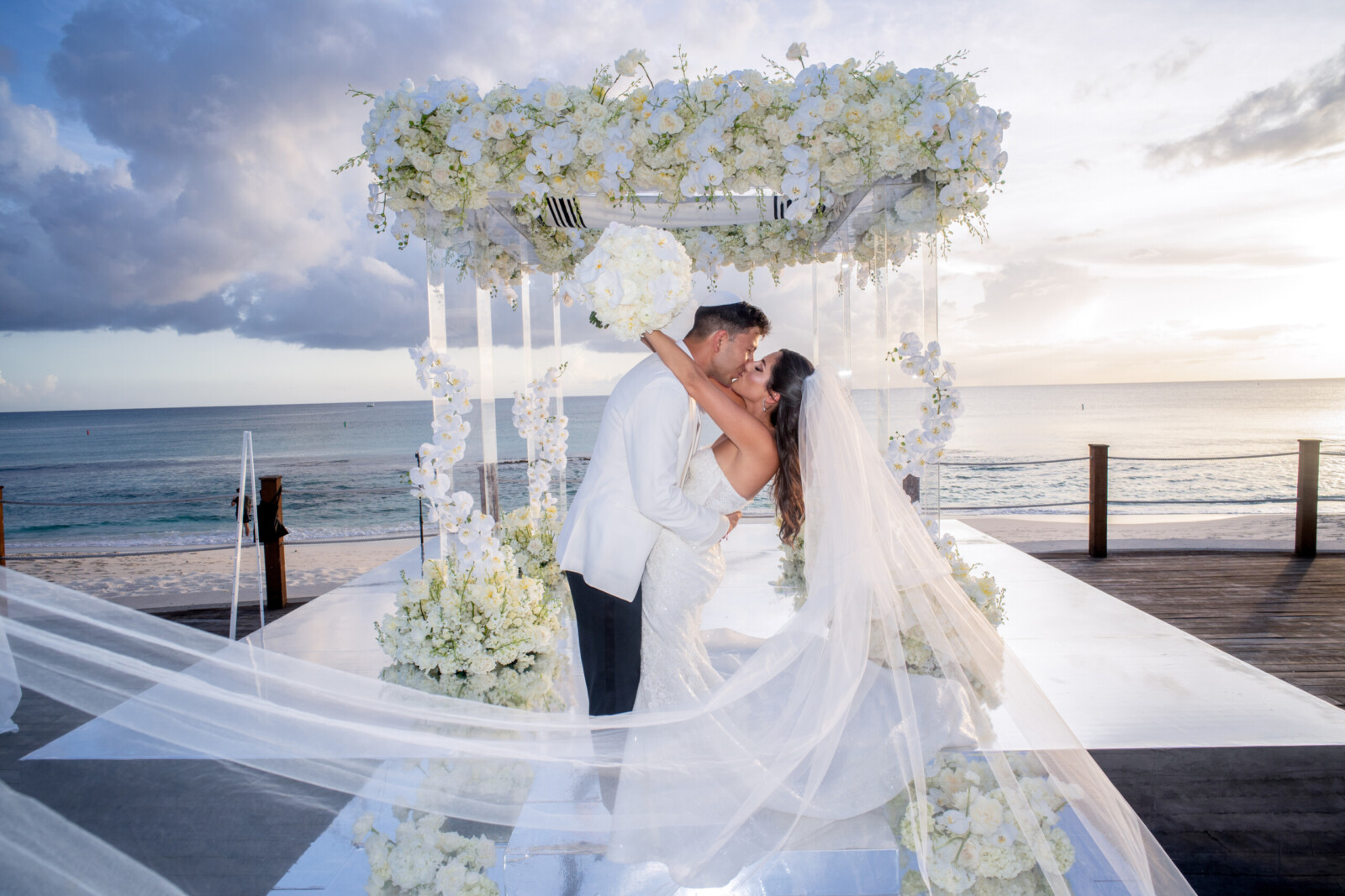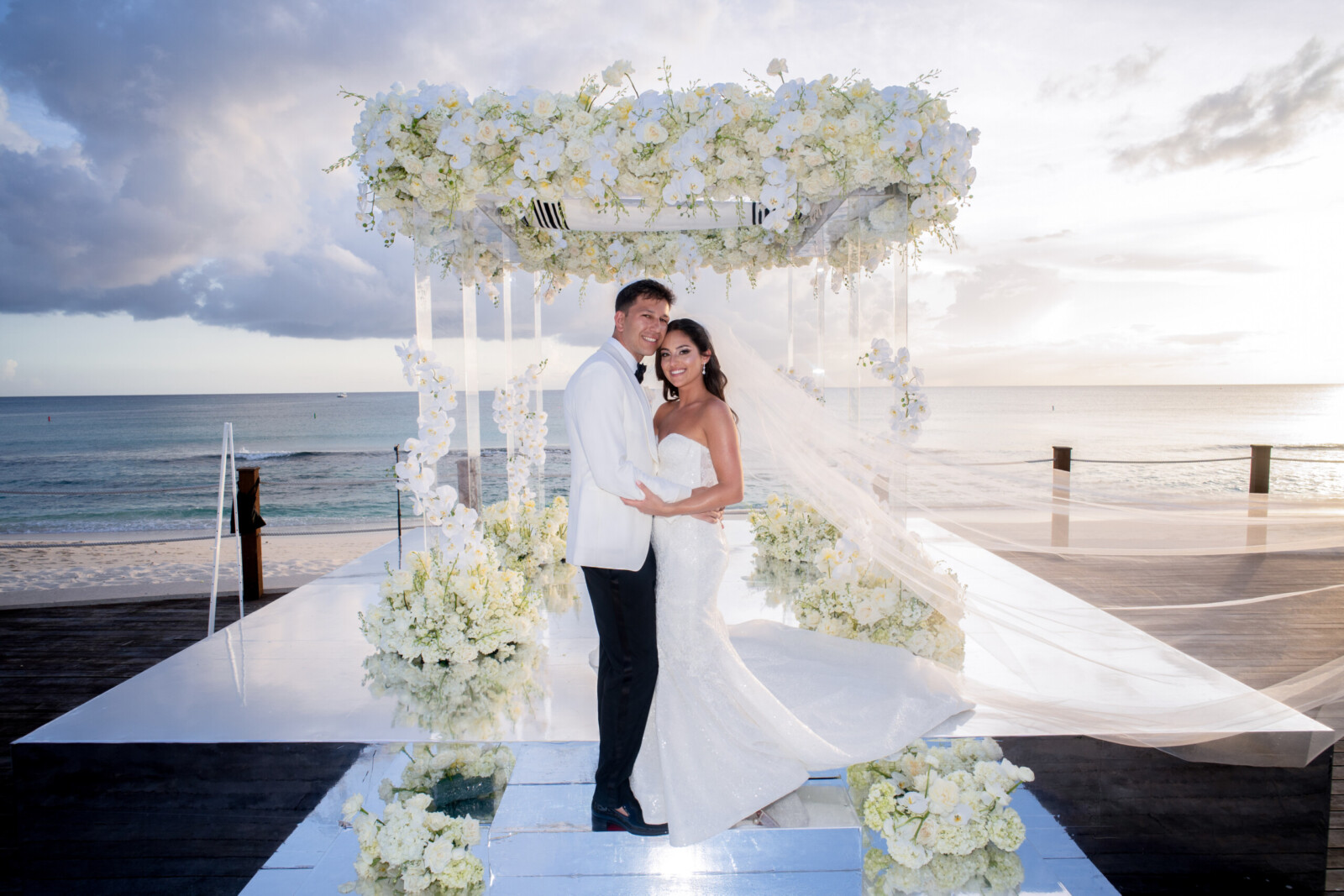 A Glamorous Destination Wedding in Grand Cayman with All-White Florals