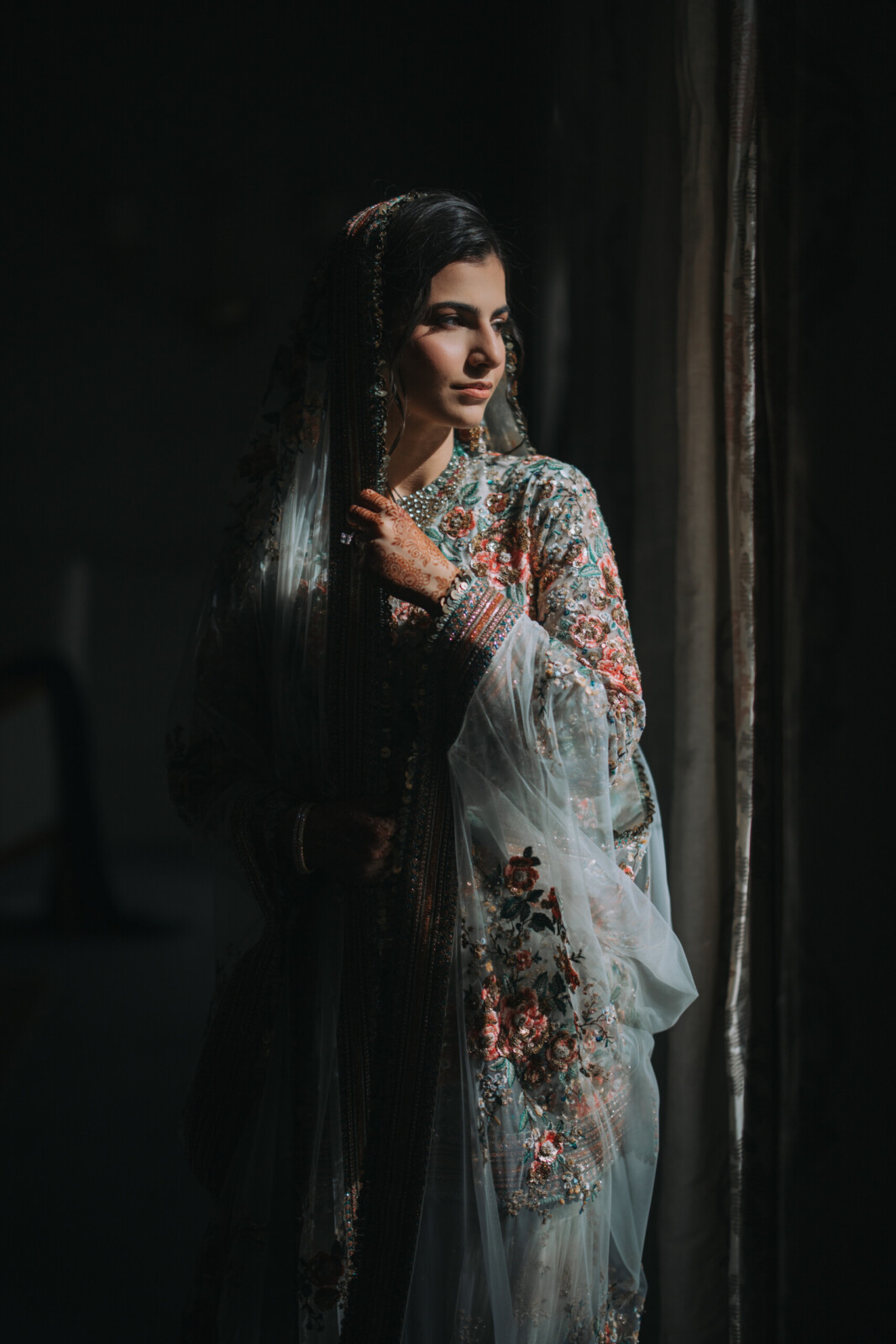 The bride made a breathtaking entrance down a mirrored aisle, surrounded by lush florals and accompanied by a live violin performance. The intimate Nikkah ceremony beautifully united Shifa and Shahzeb’s families, with guests attentively taking in every moment of the heartfelt proceedings. To capture the magic in real time, a live painter translated the ceremony’s most beautiful moments onto canvas. Guests watched in admiration as the artwork unfolded—an everlasting keepsake of the couple’s union.