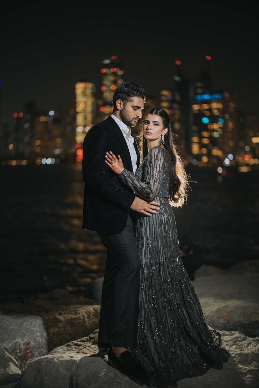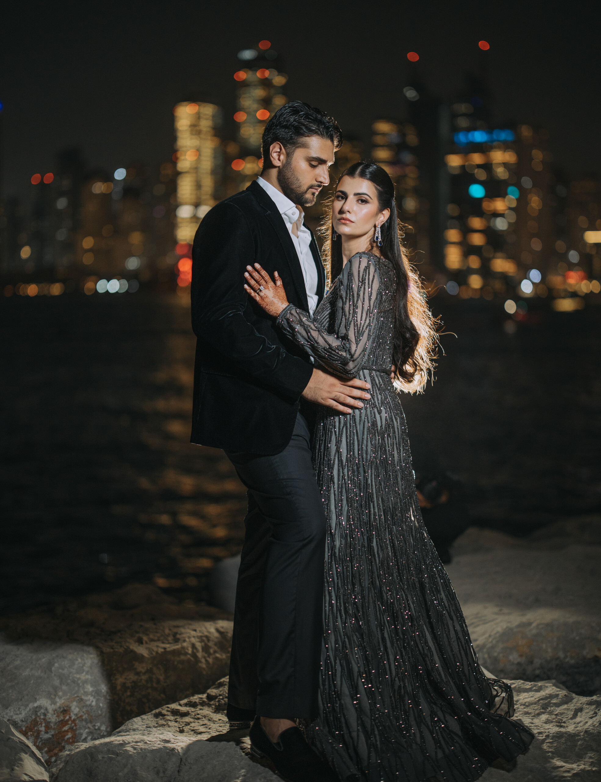 Ceremony Location: Four Seasons Resort Dubai; Reception Location: Atlantis the Royal; Welcome Lunch Location: Hilton Al Habtoor City; Sangeet Location: Delano Dubai; Wedding Planning & Management: Vivaah Weddings; Decor: U Events Global; Lighting & Sound: SoundKraft LLC; Hair & Makeup: Aisha Khan; Photography & Videography: Pervez Taufiq