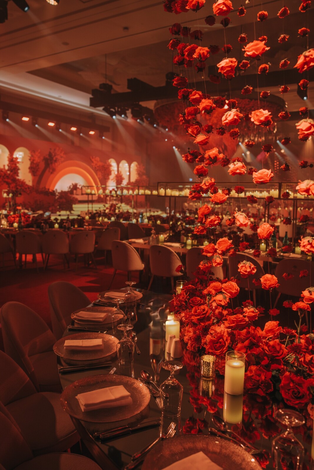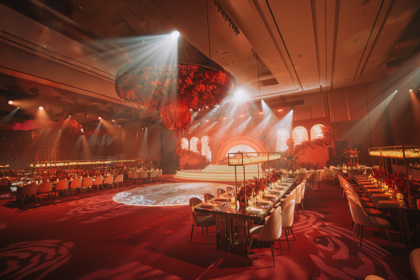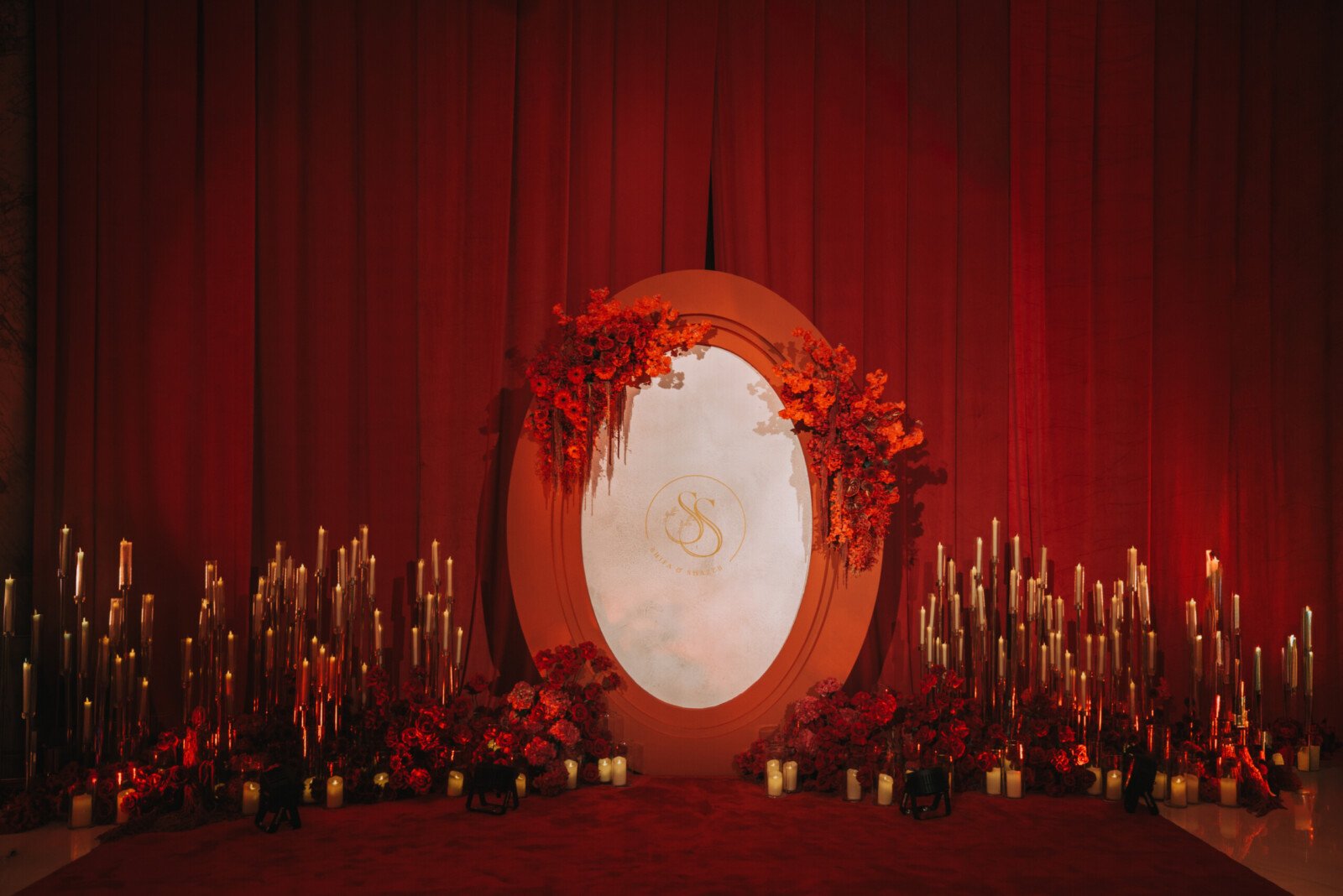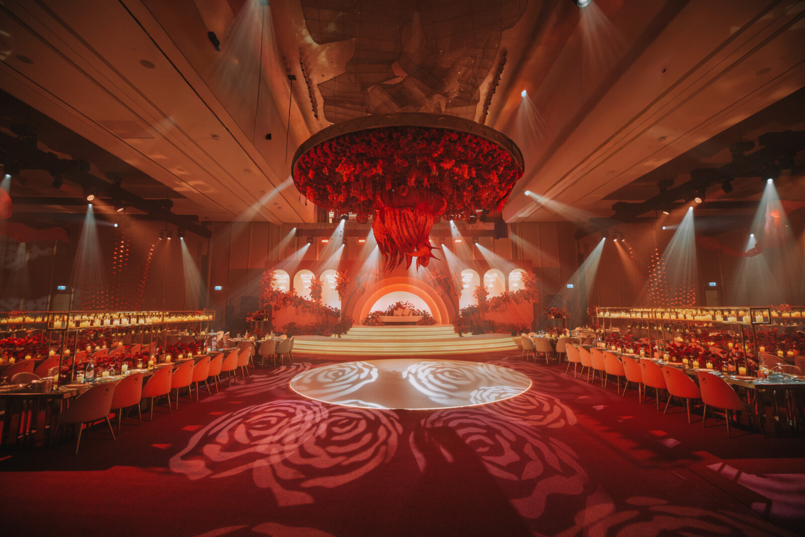 red themed wedding reception in Dubai