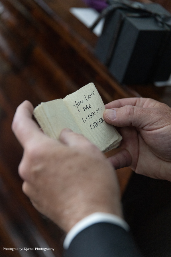 The wedding day could not have been more perfect – truly a glorious and love-filled day. Ian and Joseph had a leisurely morning, followed by lunch with the groomsmen. Their house was bustling with activity after lunch as the grooms-to-be and the groomsmen got ready. With the photographers and videographers poised to capture every moment, it was time for Ian and Joseph to see each other for a “first look” and exchange gifts. Emotions were running deep and a few tears were shed as they read the letters each had written to the other before both grooms produced identical David Yurman gift boxes.