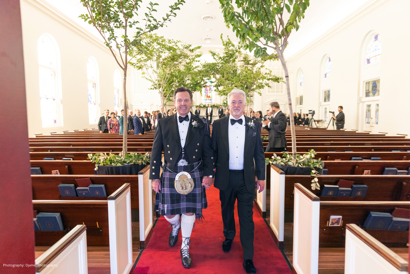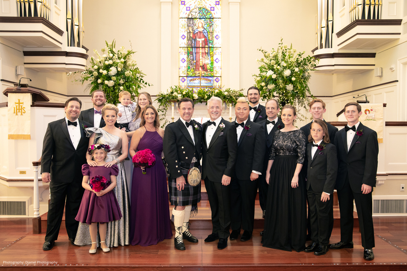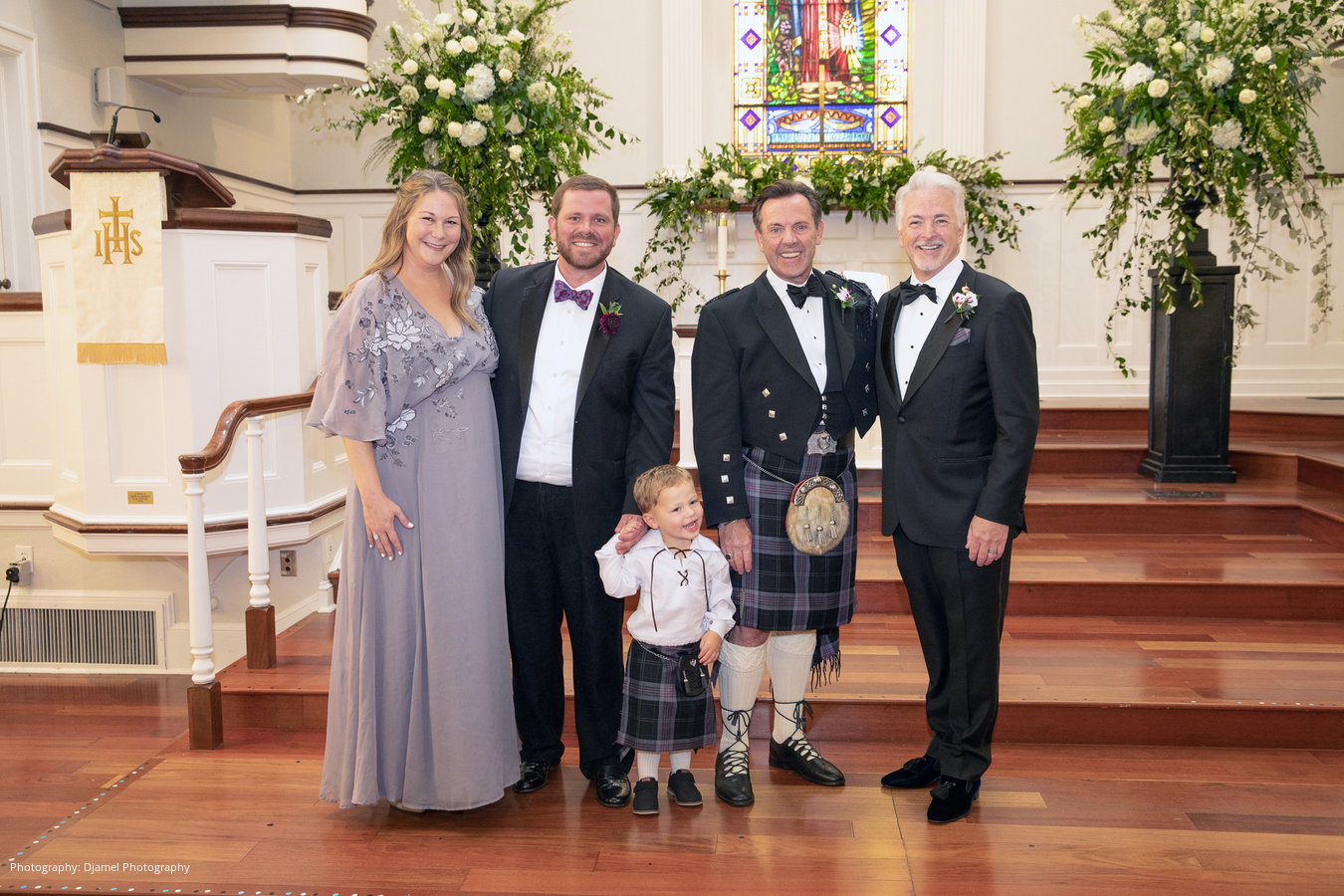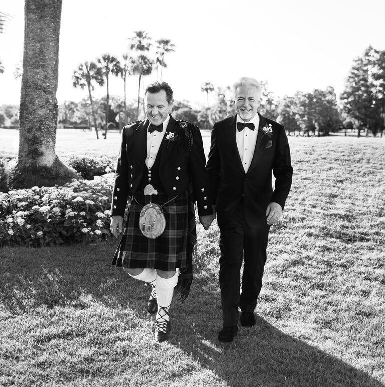 It’s not as common for same-sex couples to have a fairy tale wedding, but that is just what Ian and Joseph experienced. From the moment the vintage Bentley picked them up, the magic began. Ian and Joseph planned a formal Scottish church ceremony – complete with pipe organ, piano, trumpets, violin, and the church’s Chancel Choir. Joseph was escorted by his eldest son, and his younger son was his best man. Ian was escorted by two of his grandsons, and his eldest grandson was his best man. The ceremony was very emotional at times, especially as the violinist played Ian’s late mother’s favorite hymn prior to their vows. Ian’s granddaughter, Juliette, was the flower girl. When she realized he was choking up, she quietly said to him, “You got this Papa.”