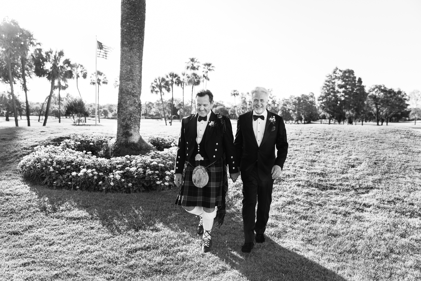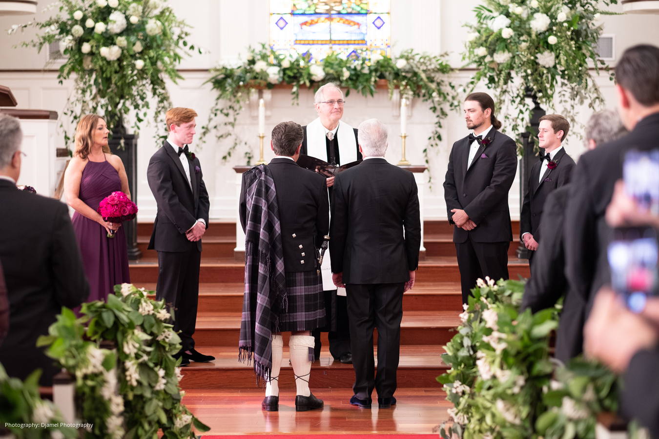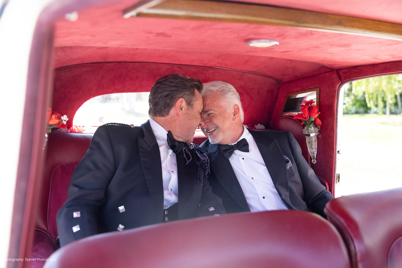 It’s not as common for same-sex couples to have a fairy tale wedding, but that is just what Ian and Joseph experienced. From the moment the vintage Bentley picked them up, the magic began. Ian and Joseph planned a formal Scottish church ceremony – complete with pipe organ, piano, trumpets, violin, and the church’s Chancel Choir. Joseph was escorted by his eldest son, and his younger son was his best man. Ian was escorted by two of his grandsons, and his eldest grandson was his best man. The ceremony was very emotional at times, especially as the violinist played Ian’s late mother’s favorite hymn prior to their vows. Ian’s granddaughter, Juliette, was the flower girl. When she realized he was choking up, she quietly said to him, “You got this Papa.”