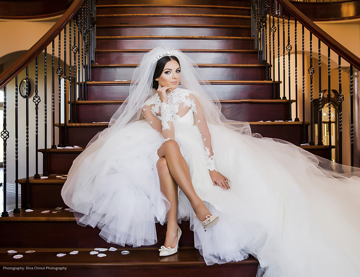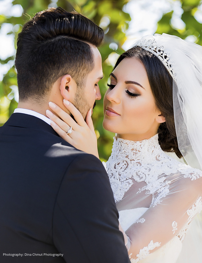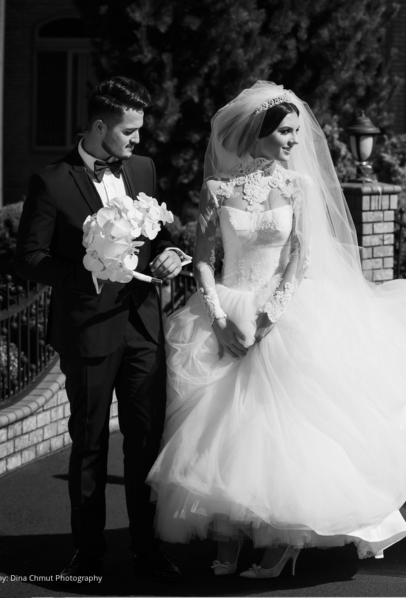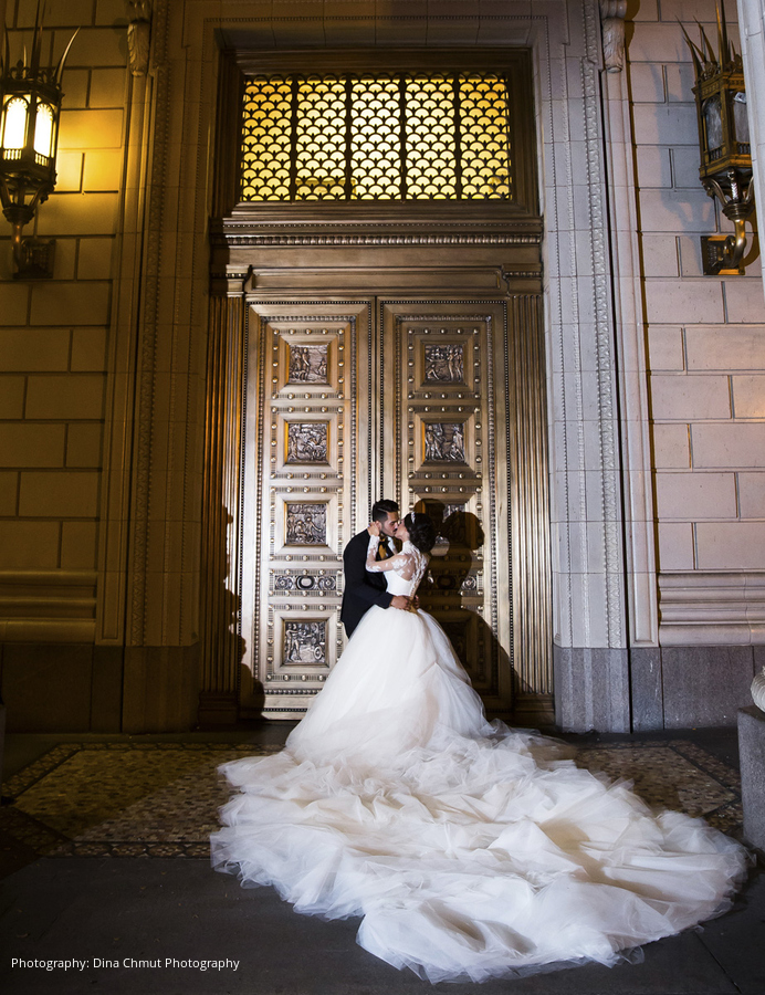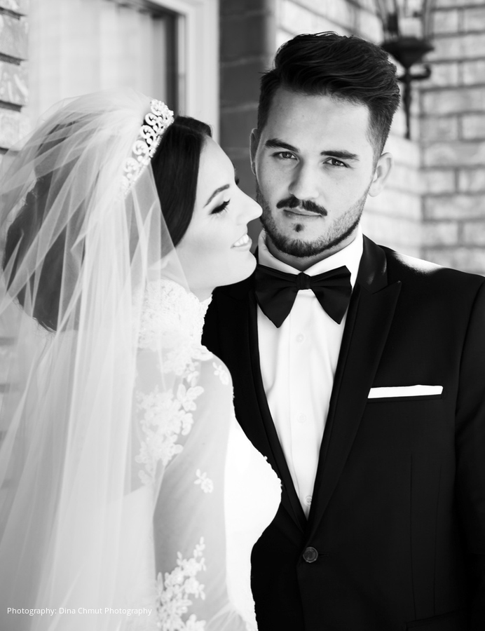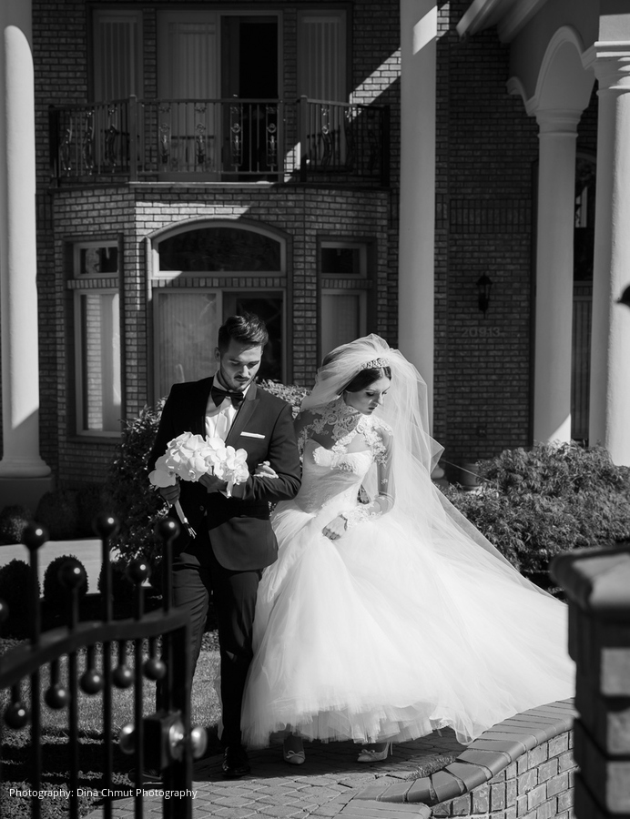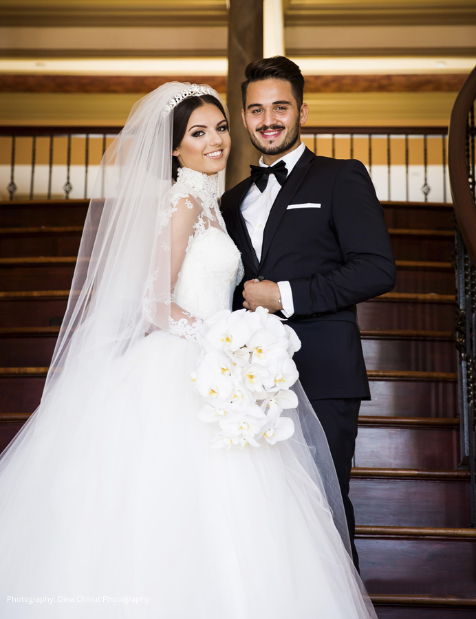The reception décor was all white, peppered with gold accents in the table linens and settings, and the ambiance was a stylish mix of modern regality. Highlights included classical music, a beautiful cake, delicious food, and the newlyweds loved personally thanking their guests for sharing in their special day.