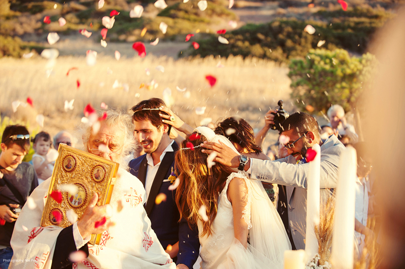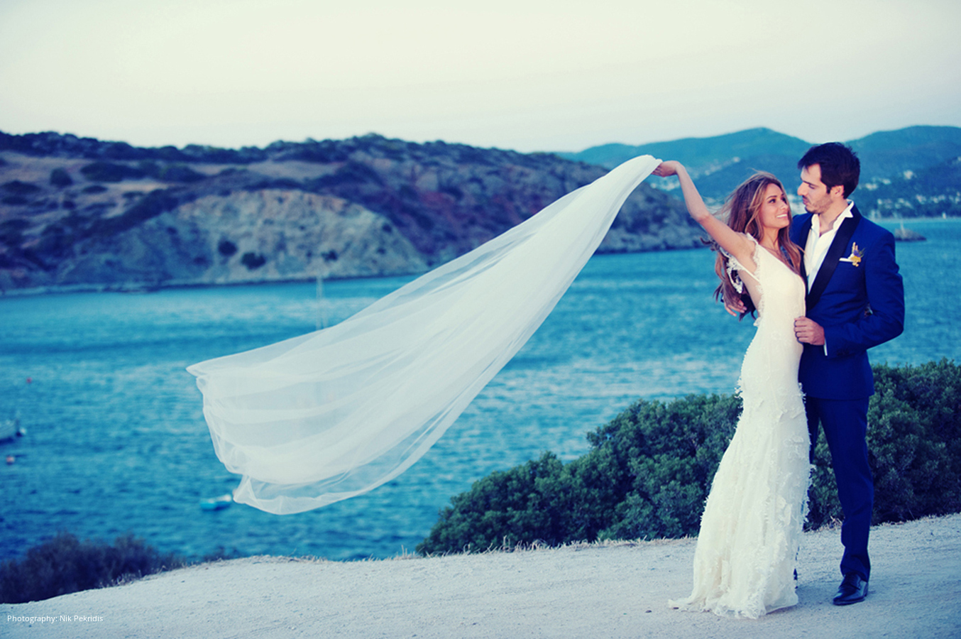 Location and Caterer: Plaza Resort Hotel, Athens, Greece; Event Planner: Alexandra Katsaiti, Athens, Greece; Wedding Dress, Veil and Tuxedo: Dimitris Petrou, Athens, Greece; Brides Shoes: Yves Saint Laurent; Photography: Nik Petridis, Thessaloniki, Greece