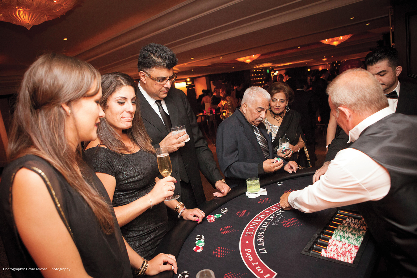 The wedding, held in Los Angeles, consisted of six celebrations starting Friday afternoon with a “bows and bowties” brunch welcoming the overseas guests, followed that night by a James Bond-themed soirée. A traditional Mehndi to cover the bride’s hands and feet in intricate designs with henna was held Saturday afternoon. Jasmin gifted one hundred of her female friends and family with spiritual eighteen-carat gold and black onyx jasmine flower bracelets that she designed and made by hand through her Bisou Jewelry company.