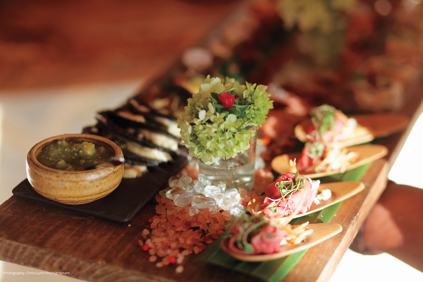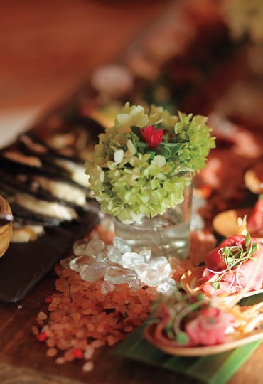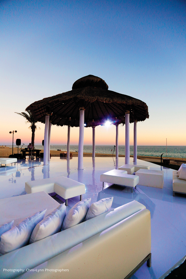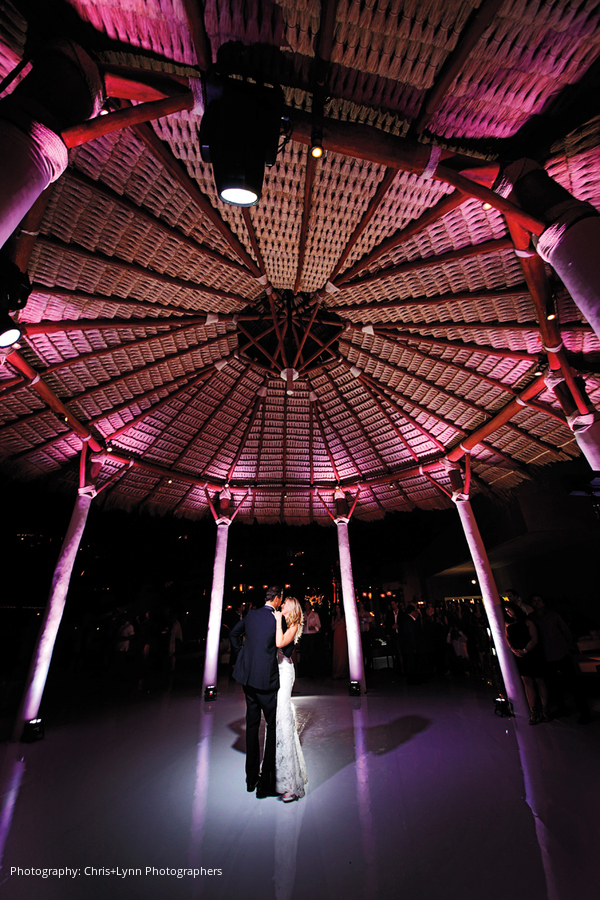 The reception took place at Capella’s Beach Club, with guests mingling on the outdoor terrace as well as sampling signature tequila cocktails at the crescent-shaped bar. Jen was joined by her father and then her mother for a spotlight dance, while Steve took a turn at the bongos as the evening entertainment heated up. A late-night food cart with burgers, pizza and hot dogs refueled guests and kept the party going late.