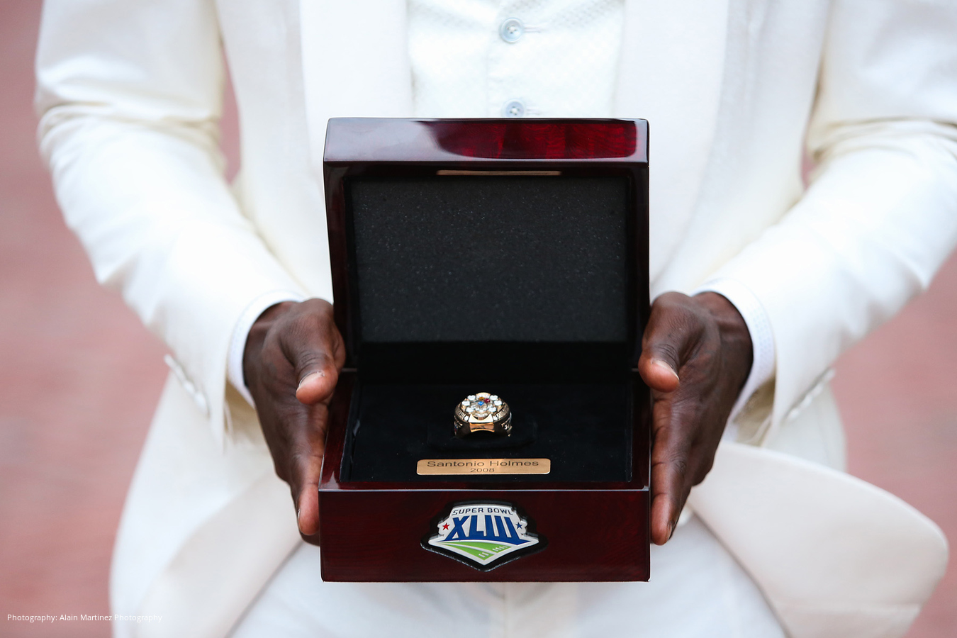 “I knew from the moment I laid eyes on her,” adds Santonio, “that she was the one I was going to marry without a doubt!”Although Lauren had no idea a proposal was coming—Santonio had taken her brother, grandfather, cousin and dad to help pick out the ring, but the entire family kept the secret—he asked for her hand on Christmas Eve 2013.