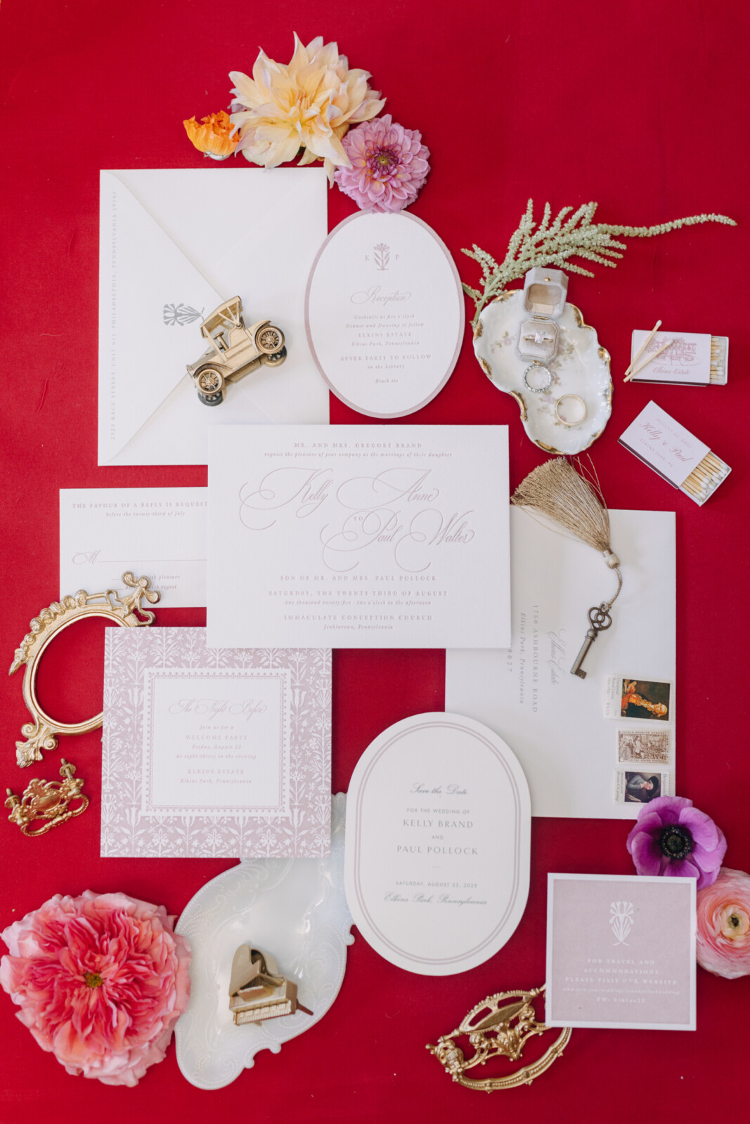 The couple shares that “a lot of Dominos” had to fall in order for them to find each other. Over the years, they’ve taken to cataloguing these seemingly random acts of fate, circumstance, and luck. When Kelly moved to NYC, she and Paul spent the next few years traveling back and forth between the two cities—a “middle-distance romance,” as they call it. Eventually, they made Philadelphia their home. Ten days later, they were engaged in the very city that brought them together.