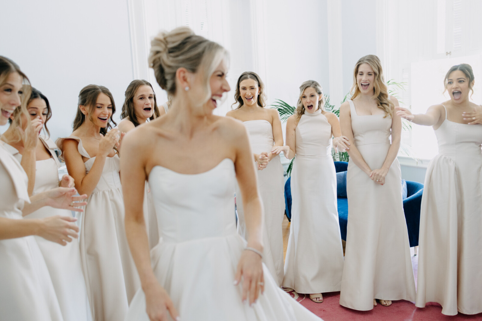 “During dinner, our band was playing ‘Shallow,’ and almost the entire reception started singing along, prompted by the most unexpected groomsmen. It was hilarious and will live rent-free in our memories forever.”