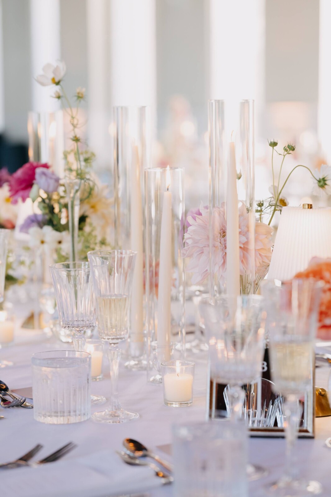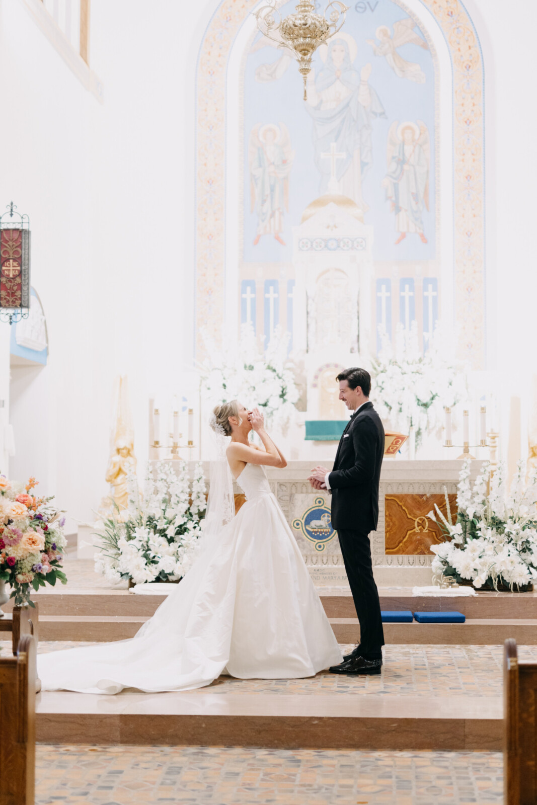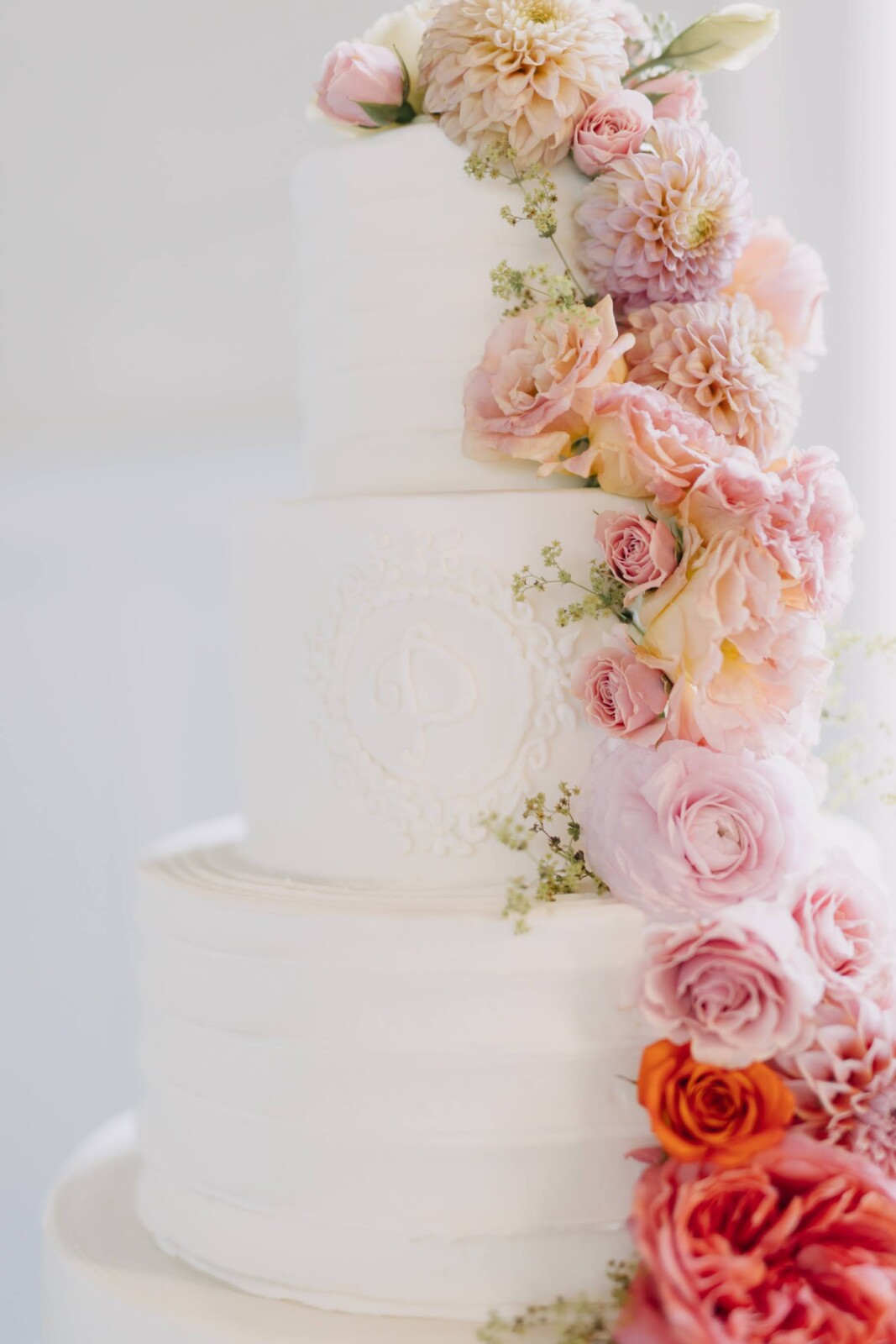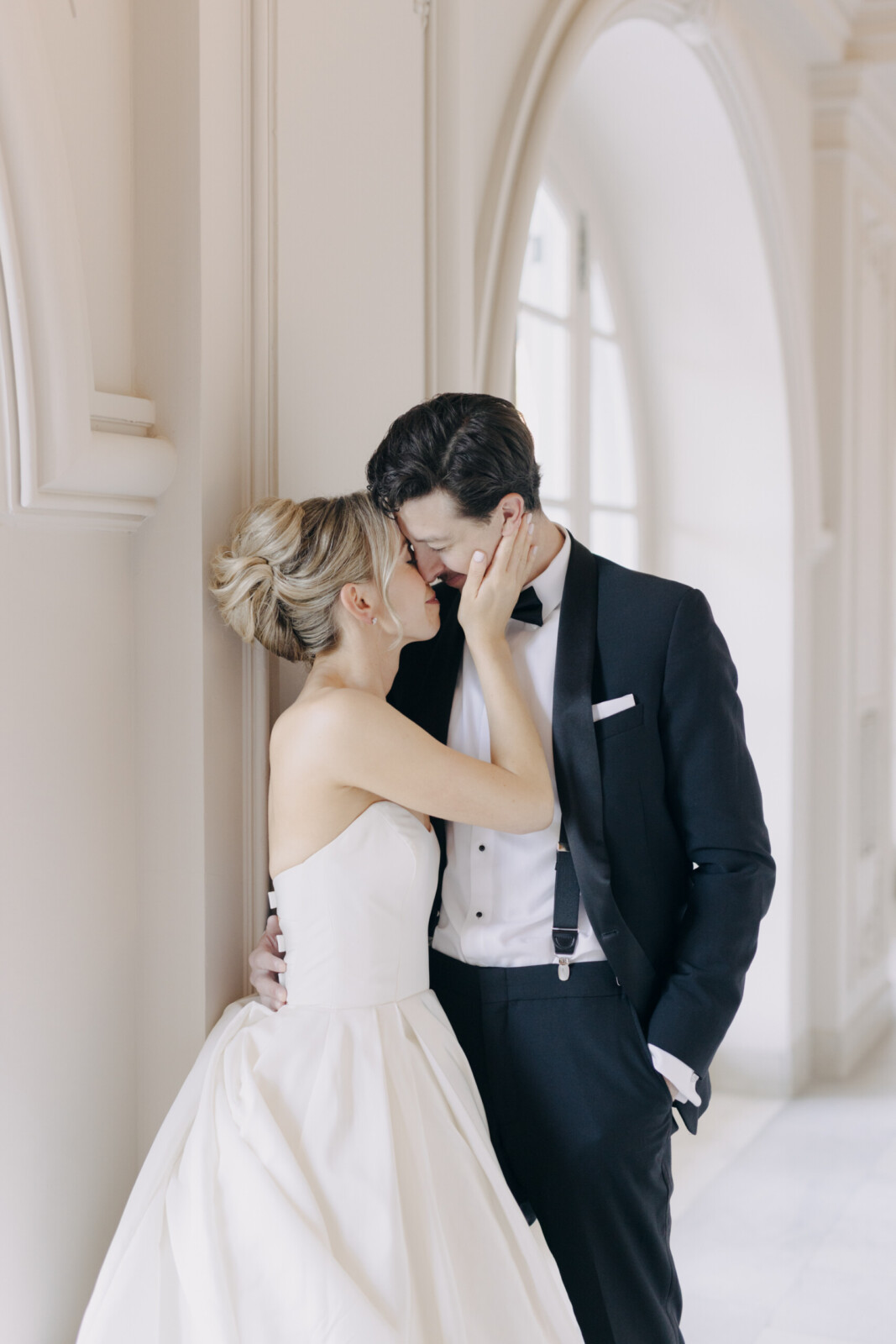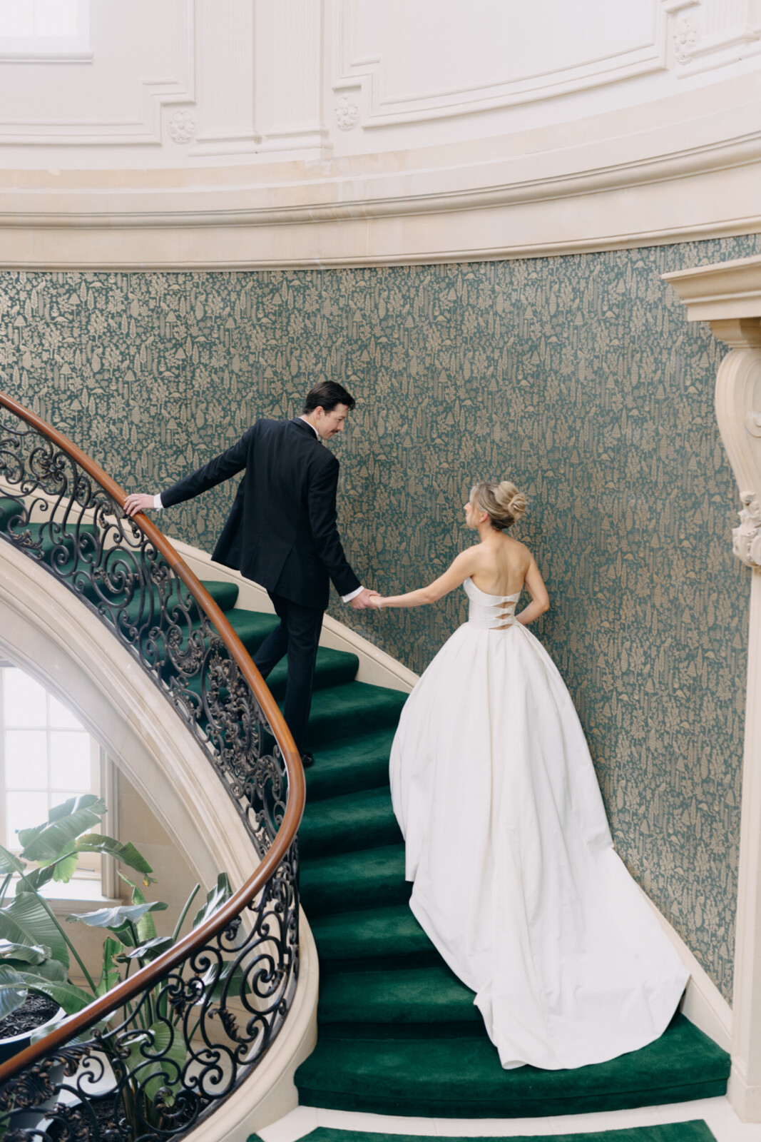 The couple had their hearts set on a modern chateau vibe, allowing the Gilded Age grandeur of their wedding venue, Elkins Estate, shine through. They also incorporated pops of whimsy and color throughout the floral designs and décor details.
