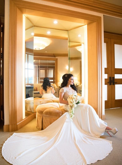 Six months after Mona and Shahab had their first date over dinner, a romantic proposal took place on a private gated beach in Corona Del Mar. They would later be saying “I do” a few minutes away, during an intimate wedding ceremony at the home of Mona’s parents.