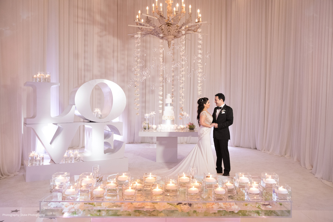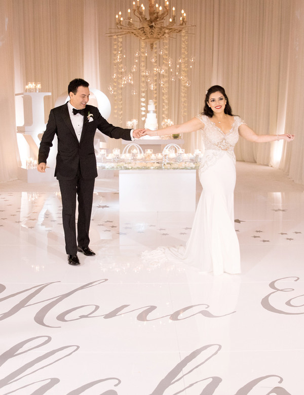 “In general, both of us are very spiritual and believe in positive energy and the power of the universe,” Mona adds. “For our wedding, we wanted everyone to feel the positive energy of our love and the timelessness of it that crosses all wavelengths and vibrations. Our first dance – to “Love” by Frank Sinatra – and father-daughter dance used the same thematic elements as well.”
