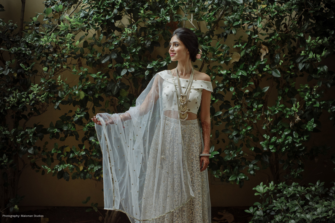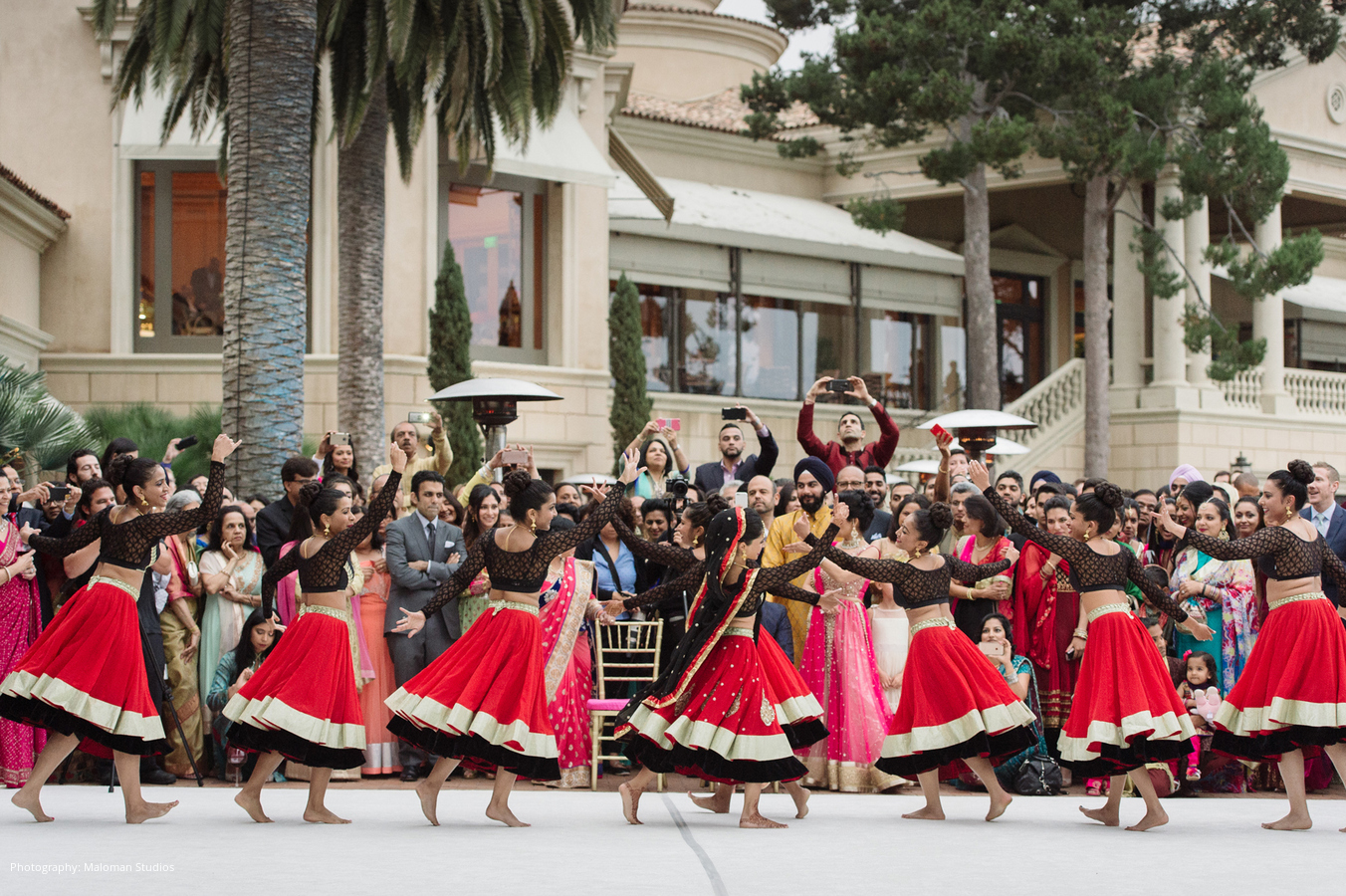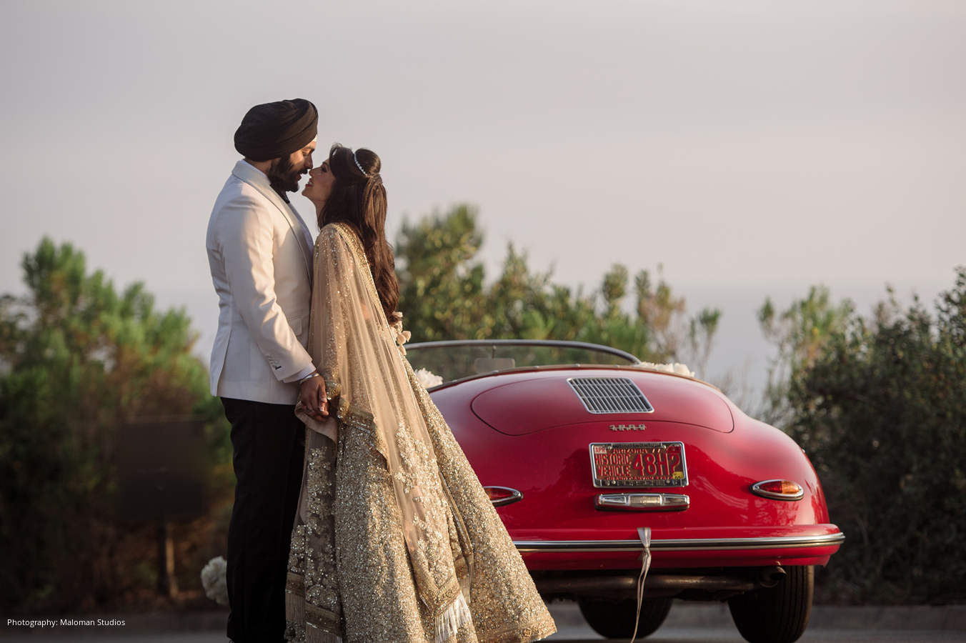 Location: The Resort at Pelican Hill Newport Coast, CA; Planner: Elegant Events, Fullerton, CA; Floral and Event Design: Bloom Box, Costa Mesa, CA; Dresses: Sabyasachi