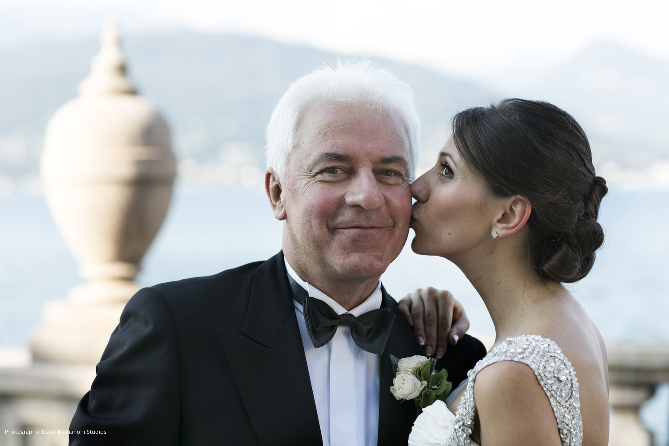 Location, Caterer and Cake: Villa Muggia, Stresa, Italy; Floral and Event Design, Planner: Italian Lakes Wedding, Italy; Wedding Dress and Veil: Vera Wang; Bride’s Shoes: Jimmy Choo; Groom’s Tuxedo and Shoes: Dolce & Gabbana; Engagement Ring and Wedding Bands: Cartier; Photography: David Bastianoni Studios, Florence, Italy