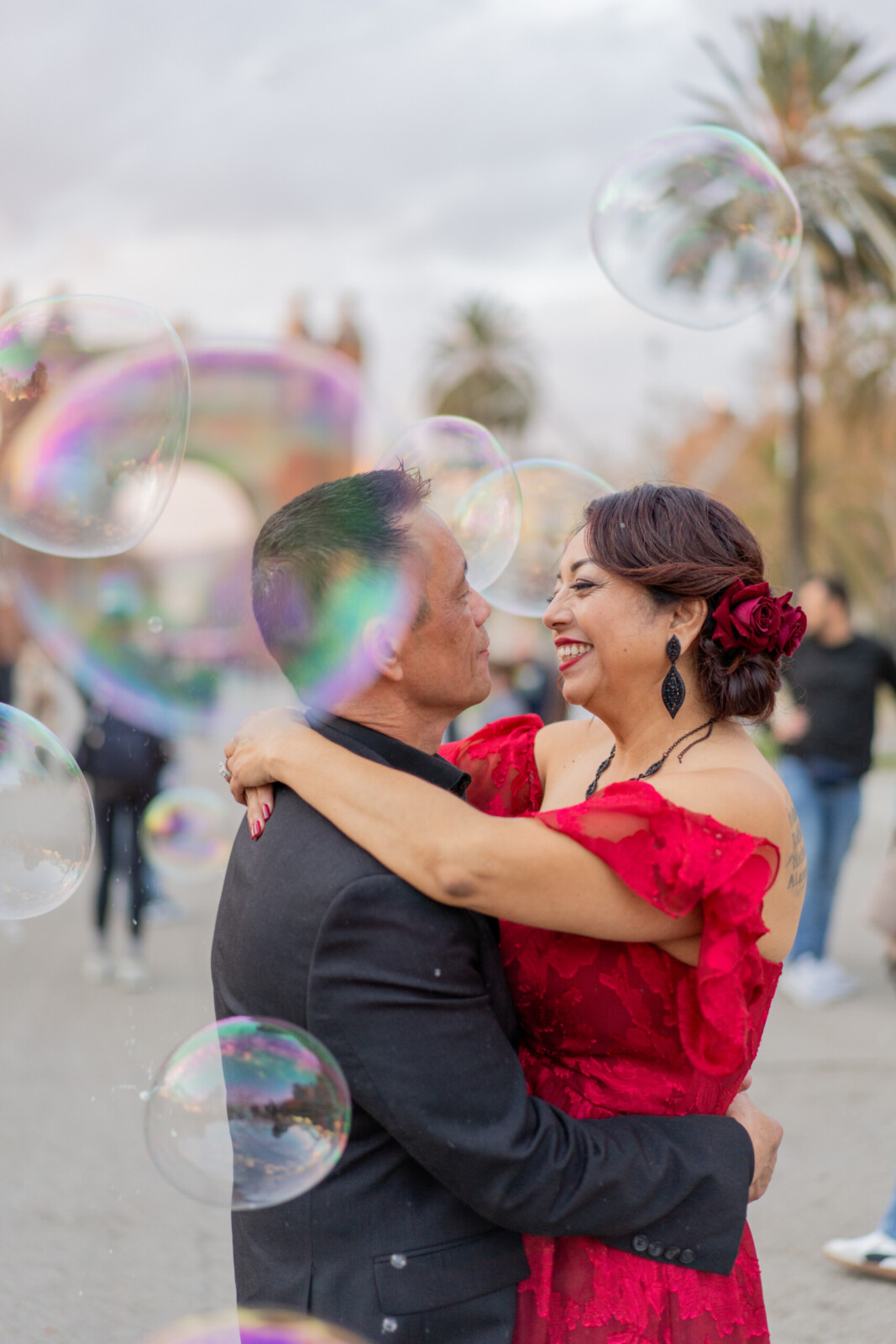 “Barcelona was one of our first trips out of the country,” they say, “so naturally we knew it was the perfect place to celebrate love, life, and our journey together. Barcelona felt romantic and meaningful and was the perfect place to reflect on our journey and reaffirm our commitment to each other. The atmosphere was elegant and warm, with a focus on celebrating our partnership and the people who have been part of our story.”