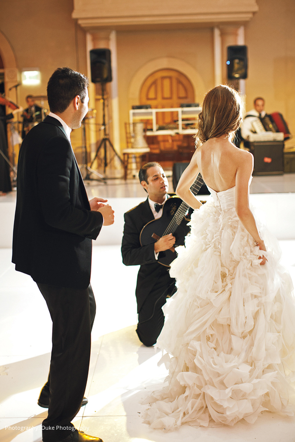 During the reception, an “amazing” guitarist serenaded the couple. A descendant of one of the famed Gipsy Kings musicians, he played upside down and right-side up and down on one knee while the couple danced around him.