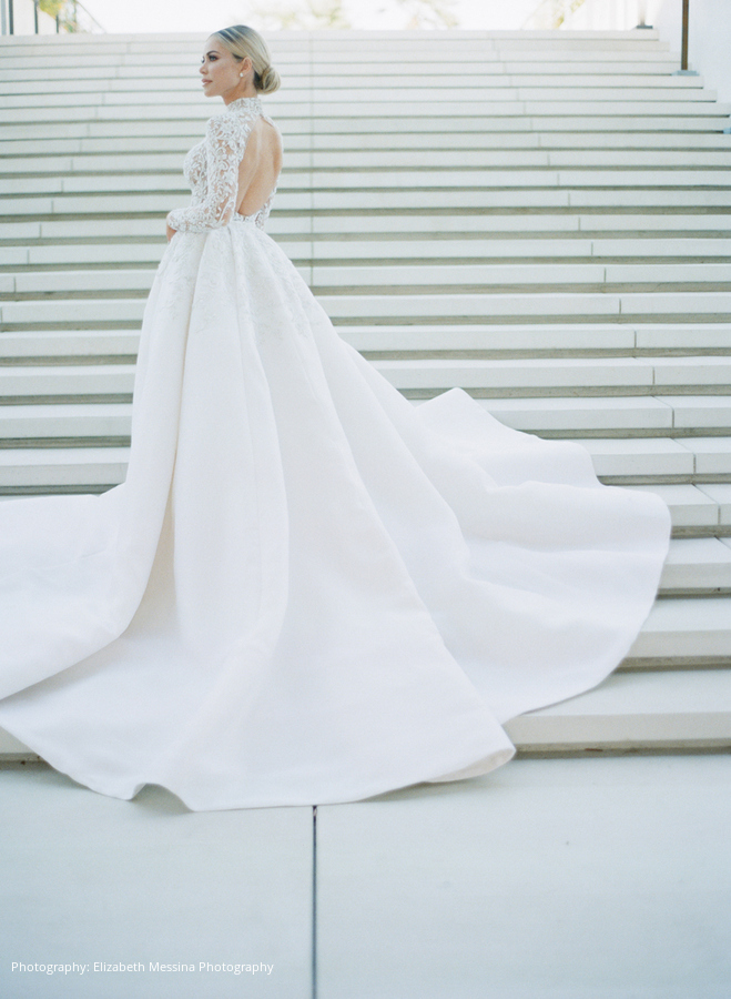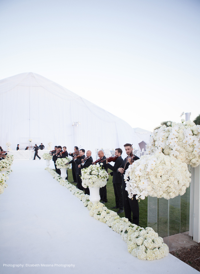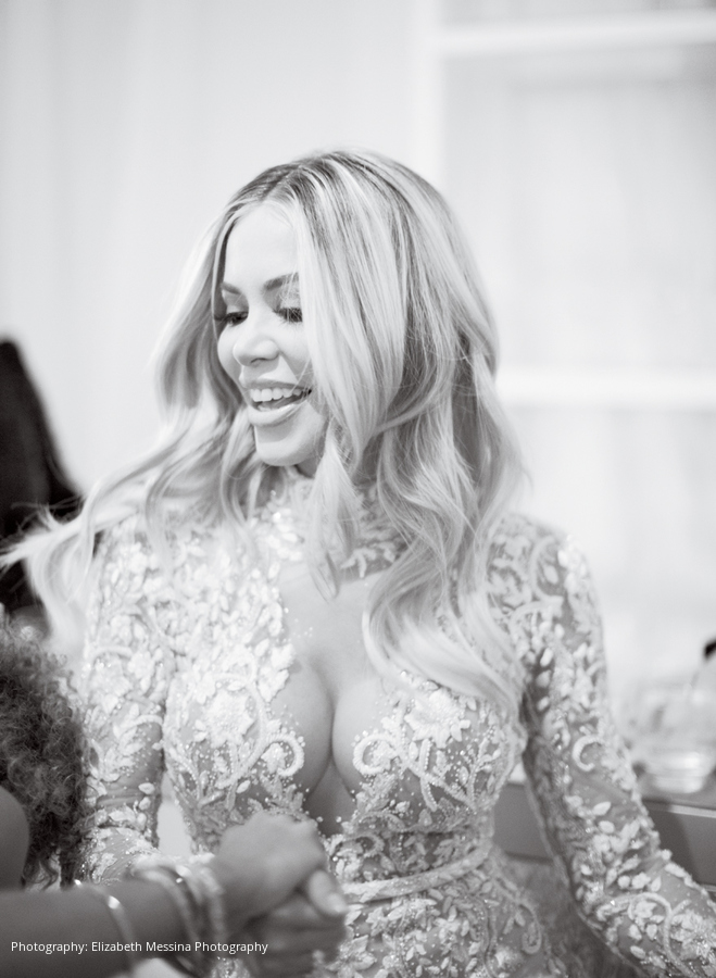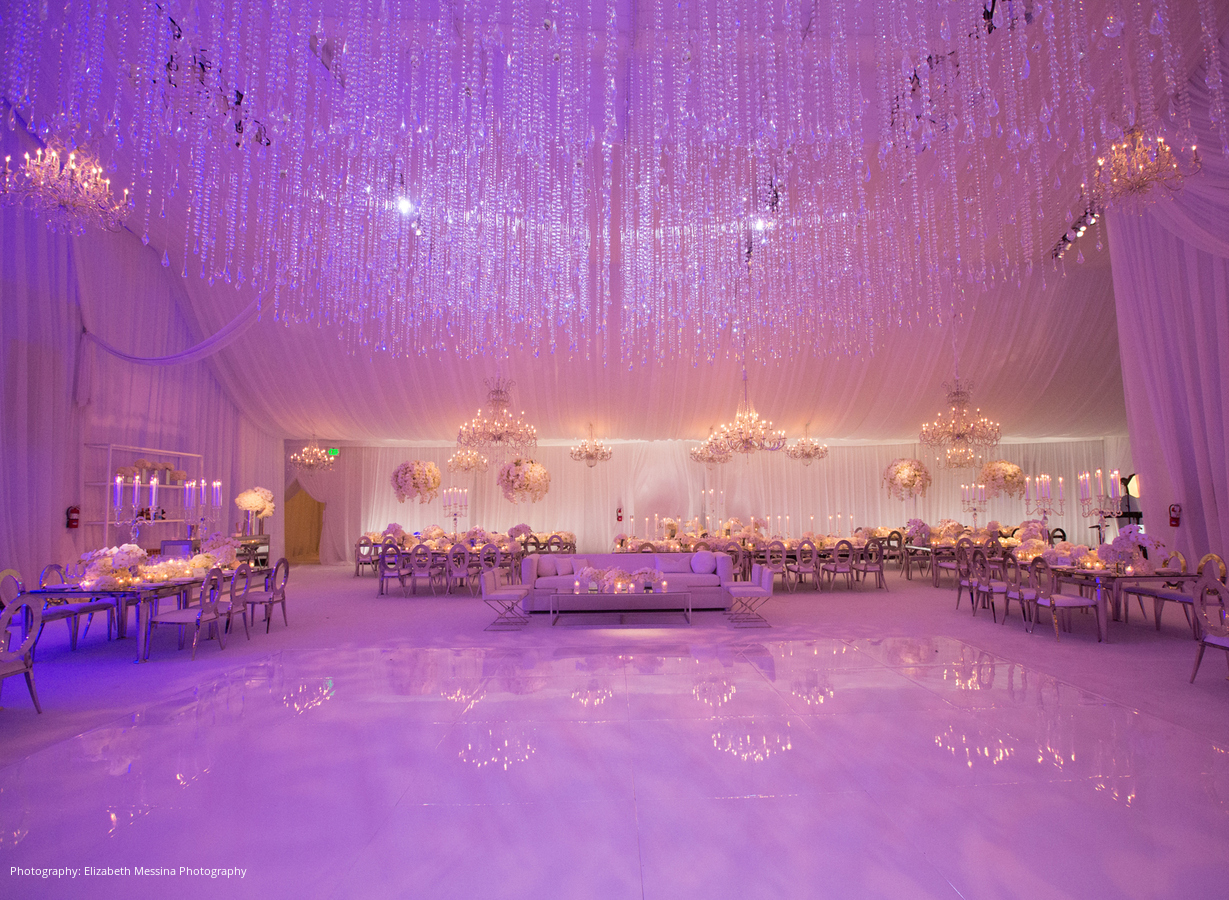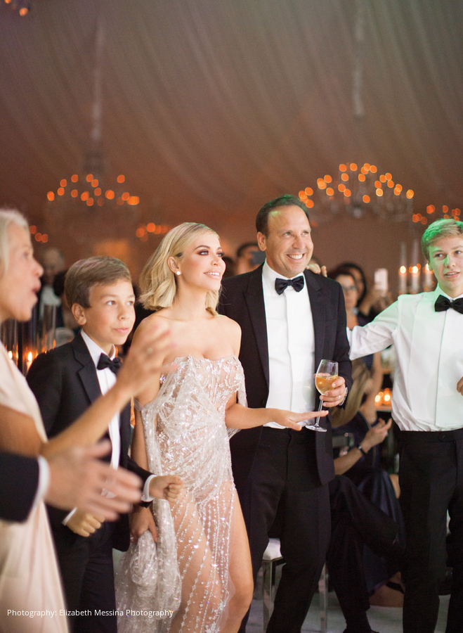 The wedding weekend was held in the peaceful desert setting of a private California estate, where 210 guests gathered from around the world. Prior to the big day, the couple hosted a Friday night white party which mimicked the décor and ambiance of L’Opéra in Saint-Tropez. The bride-to-be donned a pink illusion gown by Reem Acra, and the festivities carried on until 2:00 a.m.